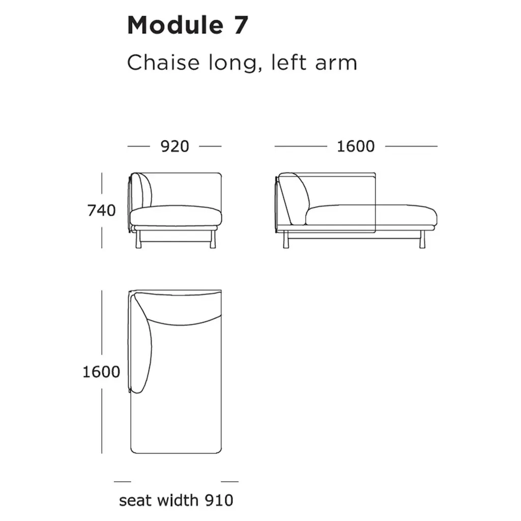 The Kite Modular Sofa's specialized modules (5-8) expand the design possibilities of this remarkable system created by Jonas Wagell for Wendelbo. These versatile componentsleft and right side modules with arms, and left and right chaise loungesallow you to create tailored configurations that perfectly balance comfort with sophisticated aesthetics. The architectural brilliance of the Kite collection is fully realized in these pieces, where the geometric exterior panels form a structured framework that embraces and contrasts with the invitingly soft interior cushioning. The chaise modules in particular showcase this duality, with their extended 1256mm seat depth providing exceptional lounging comfort while maintaining the collection's distinctive angularity. Each module features Wendelbo's exceptional craftsmanship, with a structured frame of solid wood, MDF, and steel supported by a responsive webbing spring system. The standard version includes plush seat cushions crafted from high-resilient foam topped with a luxurious 50/50 blend of feathers and ball fiber in channeled downproof cambric, while the back cushions deliver exceptional comfort with the same premium feather-fiber blend. The elegant wooden base, available in black stained, dark brown stained, or light oak, features distinctive conical legs that elevate the design both literally and aesthetically. The sophisticated piping details that outline the geometric panels further emphasize the collection's meticulous attention to detail. For complete design flexibility, pair these specialized modules with the foundational Kite Modules 1-4 and the expanded Kite Modules 9-11. With removable covers for practical maintenance and a 5-year warranty, the Kite system speaks confidently of Wendelbo's commitment to enduring quality and distinctive design. Each module sold separately.