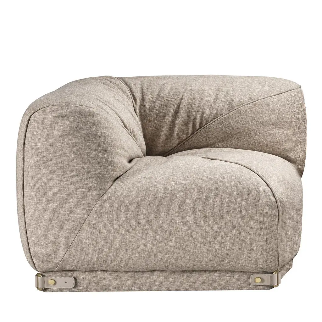 The Leisure Terminal Beige Modular Sofa offers a sophisticated blend of comfort and style. Designed with an inviting deep seat and softly curved contours, this modular piece seamlessly fits into various interior styles. The sofa consists of two base elements that are elegantly connected by a strap featuring a brass buckle, enhancing both aesthetic appeal and structural integrity. Its plush seating invites relaxation, making it an ideal addition to both casual and formal living spaces. With a focus on creating a cozy yet chic environment, this modular sofa easily adapts to personal preferences and room layouts, offering versatility in design.