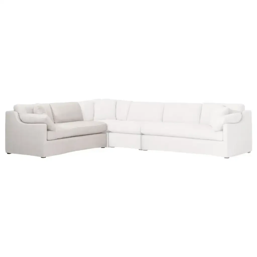 Create the sofa of your dreams with this modular sofa set. The pieces of this sofa are sold individually so you can design a sofa to fit for your space. This piece is the 2-Seat Left Arm Sofa. It is constructed with an 8-way hand tied suspension and cushions filled with a poly and down blend for ultimate comfort. Each piece of this modular sofa contains an undermount metal snap to link each piece to prevent sliding, movement and gaps between pieces. This sofa will fit well in many settings, as it has a bisque-colored fabric that is neutral and appealing with many other color combinations and décor styles.