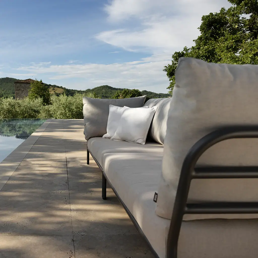 It's all about level, to come eye to eye with nature, to relate to the horizon and to get lines and shapes to move up to a higher level! The lightweight frame and soft cushions creates both contrast and comfort – and lures with relaxed lounge atmosphere. LEVEL is a modular lounge collection consisting of 2 sofa modules – one left and one right - a singl e lounge chair , an ottoman , a coffee table and a side table , which makes it possible to mix the modules in many different ways.