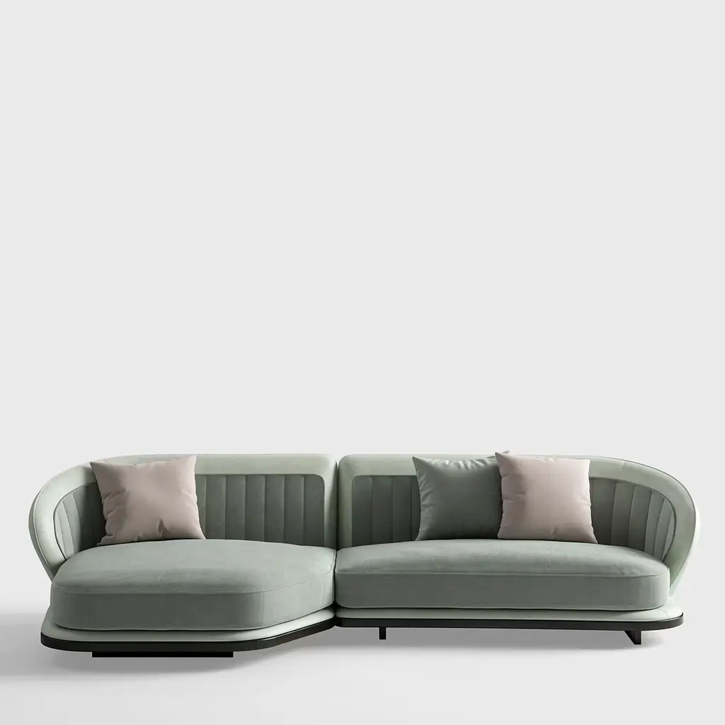 In the design of this modular sofa, all the corners and the edges got round and beveled for receiving the light’s sapient game, for inspiring calm and serenity, and for stimulating social relations and conviviality. The shape is also essence: the usage of smooth lines, colors, and materials benefits our mind gifting us with personal spaces which can grant wellness to us and to the people we care about. Available in different colors.Decorative cushions excluded.