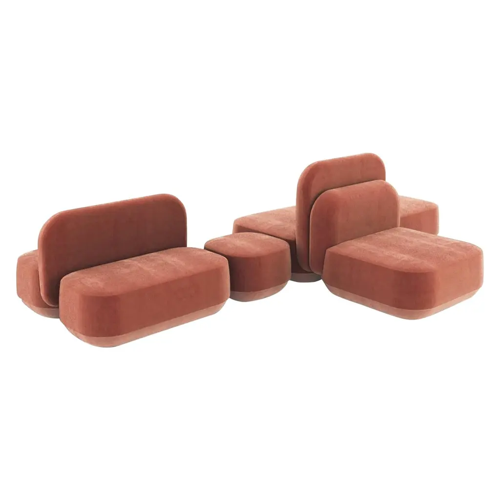 Luizet 3 seats without back modular sofa by Luca NichettoMaterials: Upholstery: Fabric Top: Verde Marinace granite/Emperador Silver dark/Emperador Tundra/Red marble/Terrazzo Botticino marble or Noce Canaletto woodStructure: Powder-coated metal, cast aluminum legsDimensions: W 240 x D 80 x H 42.6 cm HS 42.6 cmAs in a game that frees the imagination and possibilities, Luizet is a modular sofa system thatinvites to combine together various elements by a distinctive geometry.An arched angular piece, a central square and a circular one, available both as a table and as apouf, are the foundation for a variety of settings. Supported by a discrete and elegant metal frame,the three modules can be juxtaposed and mixed with the addition of cylindrical and rectangularcushions for the backrest.From a classic three seater sofa to a number of wider and more complex solutions.Italian designer Luca Nichetto is the Art Director of La Manufacture.Born in Venice in 1976, he studied there at the IUAV, the Venice University Institute of Architecture, from which he graduated in industrial design. In 1999, he started his career designing his first projects for Salviati using Murano glass. He went on to collaborate with Foscarini as a designer and consultant. In 2006, he established his own studio in Venice, which specialised in industrial design and design consulting. Five years later, in 2011, Nichetto opened a second studio in Stockholm, Sweden, where he now works andresides. Throughout his career, Nichetto has served as Art Director for a number of international design brands.