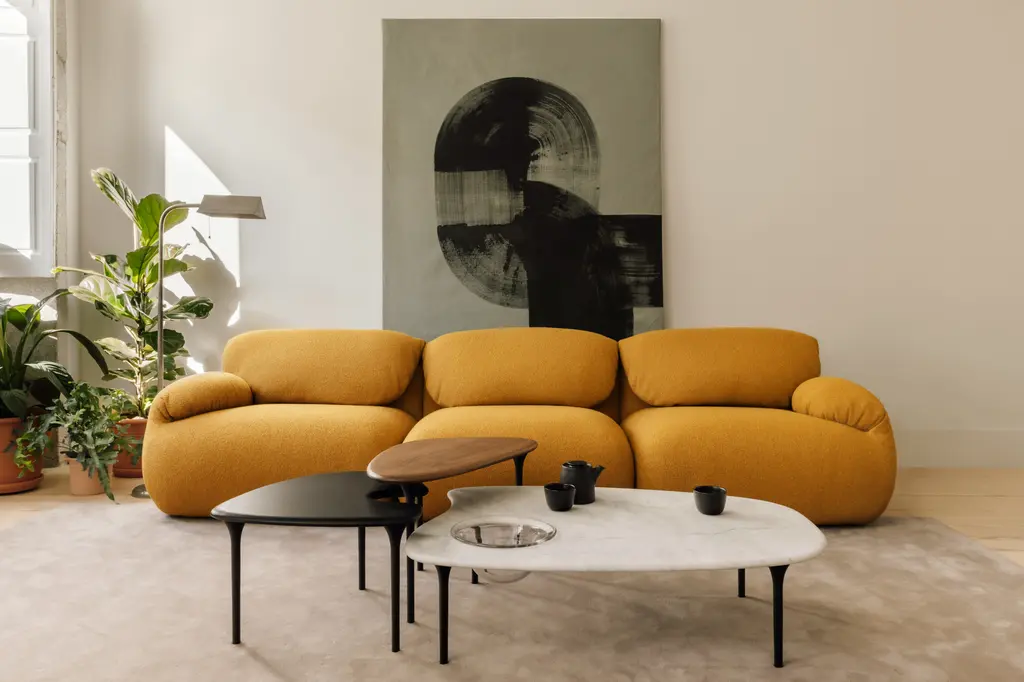 The comfortable, inviting Luva Sofa (2022) features an innovative back that can be opened up or folded down to suit however you like to sit. When the back is expanded, it embraces you in a relaxed lounge position. When closed, it supports you in a more upright position. Designed by Gabriel Tan for Herman Miller, Luva was inspired by the shape of a boxing glove and is named for the Portuguese word for "glove." The soft, cushiony form of this modern sofa comfortably curls around you like a cupped hand. Made in Italy.