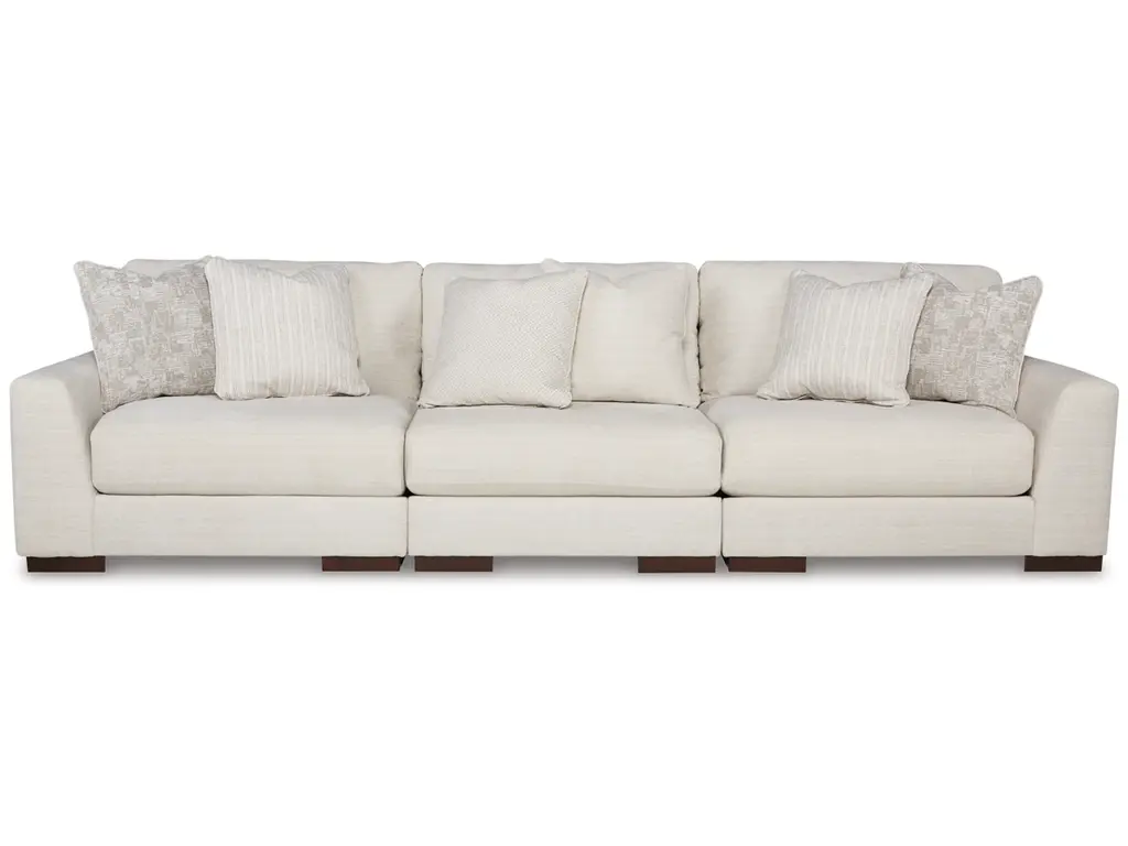 Distinguished yet unassuming, the versatile and visually appealing Lyndeboro sofa adds a refined touch to any space. Inspired by the dapper look of fine tailored menswear, its rich texture turns heads, while a soft, neutral hue blends effortlessly with other colors in the room. Clean lines and wide track arms embrace a minimalist contemporary style. Plush, reversible deep cushions provide extraordinary comfort and can be rotated for longer life. Accent pillows in soft shades of complementary colors add subtle contrast. This handsome piece will make a memorable impression again and again.