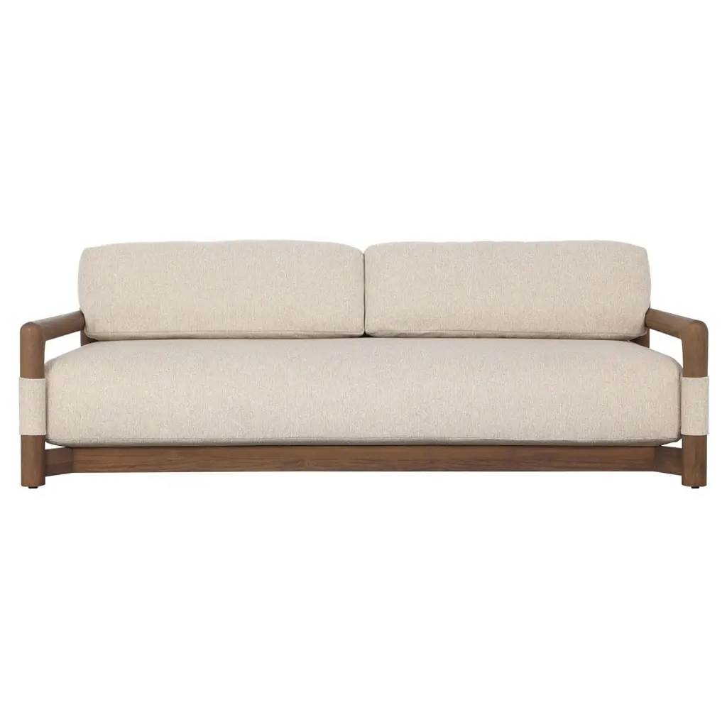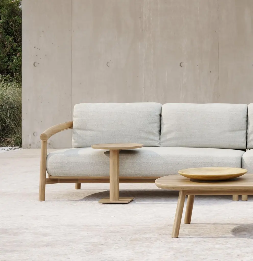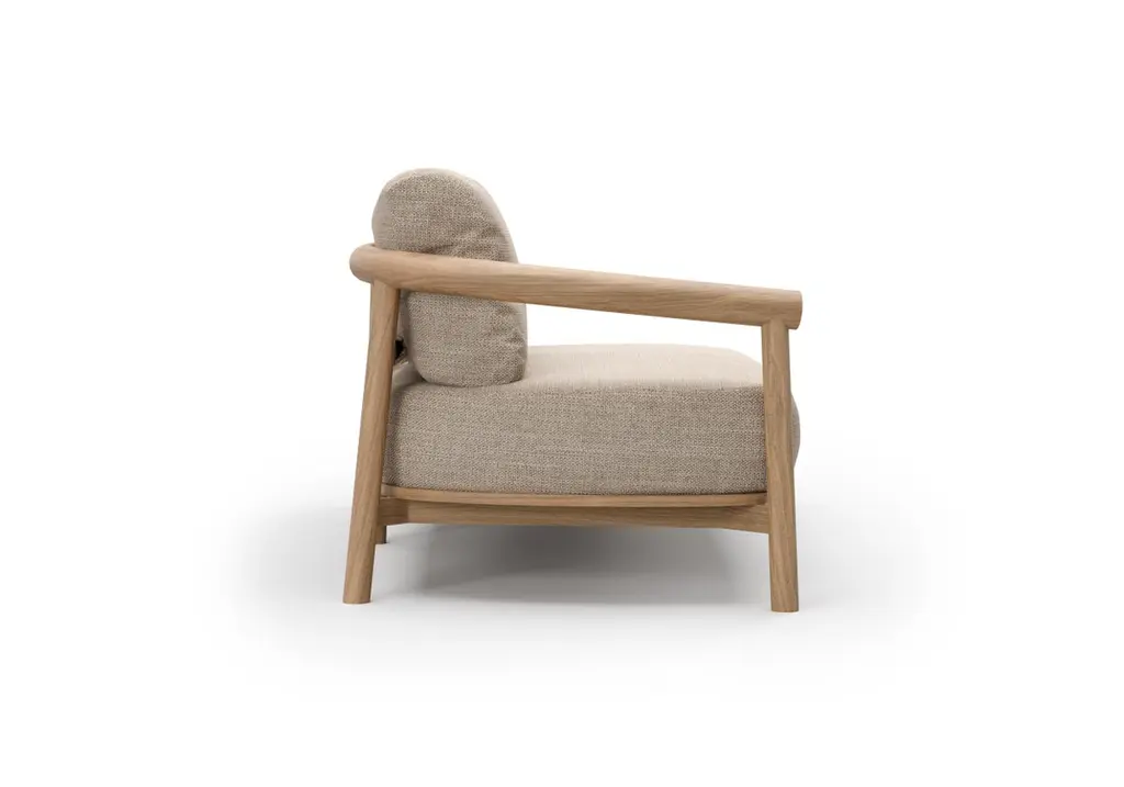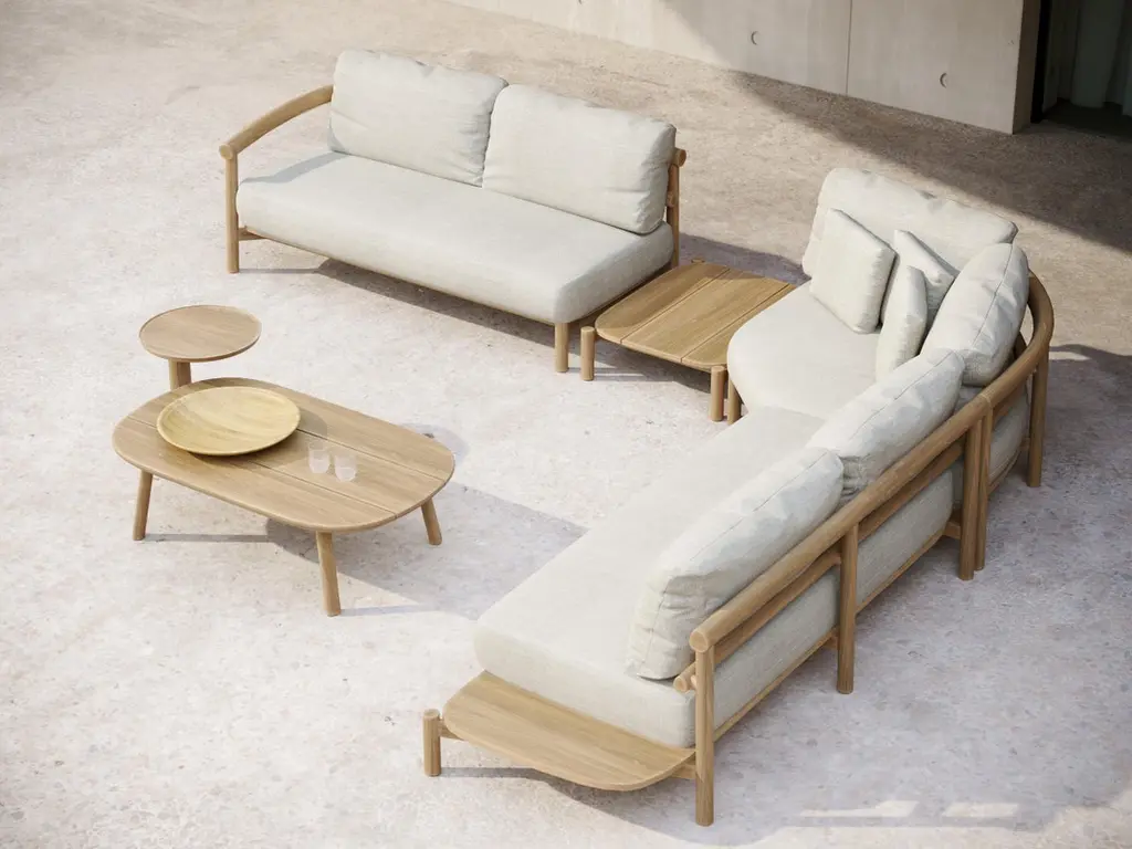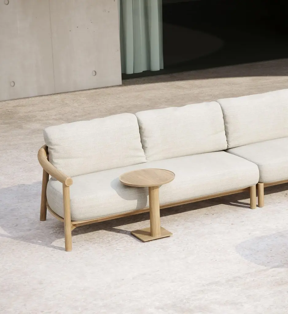 Lyora Teak Wood And Ethereal Fabric Two-Seater Left Modular Sofa by SNOCDimensions: D 88 x W 170 x H 66 cm. SH: 42 cm.Materials: Teak wood and Ethereal fabric. A delicate mid-century style, tempered by contemporary and eclectic incursions to create an elegant, but never flashy product. Simple lines, geometric shapes for a style that recalls functionality, but with class, to give every environment a touch of absolute uniqueness, elegance, and, why not, a pinch of history. The structure, entirely made of Teak wood, is embellished with fine workmanship to maximize its functionality and ergonomics. The collection is available in armchairs, two-seater and three-seater sofas with compact dimensions, as well as a modular unit featuring enveloping lines.SnocSince their foundation in 2004, SNOC’s history has been interwoven with that of international design. Each chapter written with care, each product reflecting its passion. The company understands that a real story exists behind each object and behind that story, a real person desiring something more. Their ever-developing methodology focuses on defining the core of a brand and utilizing those characteristics to help nurture its soul, aiding in forging real connections. This approach , results in their unique “work in progress” style: original, versatile solutions that in their signature blend of sound, vision and design best-suit every environment and situation, arousing a range of emotions on a daily basis as well as standing the test of time.Driven by functional research, an inclusive project and product culture, and deep care for the environment, we exist as the timeless yet present essence of outdoor furniture design elevating private and public space a like with thoughtfully presented, endlessly adaptive creations.