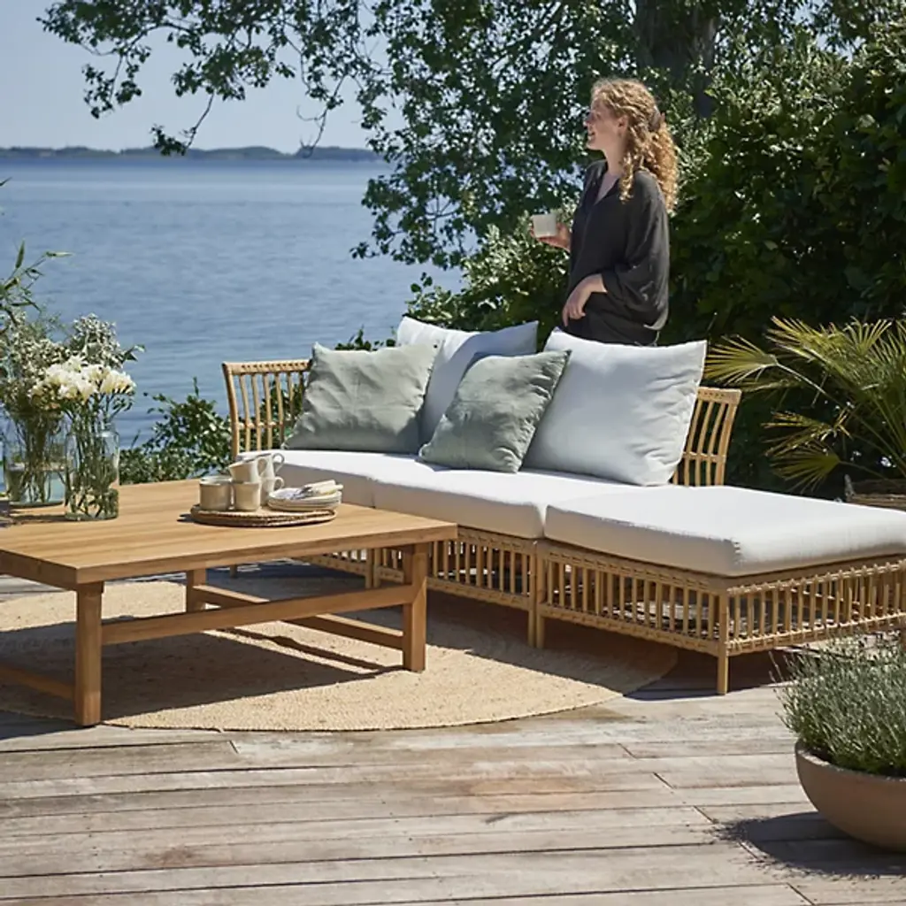 The Maggie Outdoor Center Modular Sofa from Sika Design adds relaxed elegance to any patio. Crafted with durable AluRattan and ArtFibre, it features a timeless Mid Century Modern look. Cushions in Tempotest Performance Fabrics offer comfort and weather resistance. Its modular design lets you arrange it to suit your space, making it both stylish and practical. A great way to bring charm and comfort to your outdoor living area, season after season.