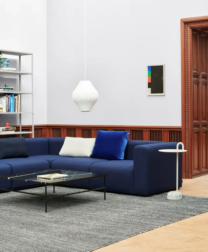 Designed with maximum comfort and minimum details, the Mags sofa combines strong aesthetics with timelessness to create a HAY classic. Keeping superior comfort and quality in mind, Mags is built using a solid construction with durable, high-density foam and interior padding for optimal longevity. The low frame has a distinctly lounge feel, which is reinforced by the deep seats and results in an open, welcoming space. The wide range of functional modular units mean the sofa can be fully customised with chaise longue, corner modules or additional seats to suit any room or purpose, while the upholstery options enables the sofa to find its own personality. Frame: Hardwood plywood frame. Seat, back & armrest: Polyurethane foam. Legs: Black stained beech legs with felt pads.