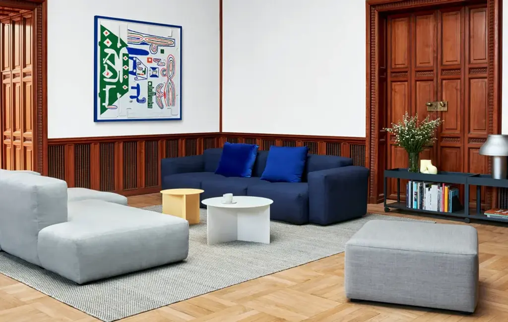 Rounded edges and soft cushions create a milder, relaxed tone with the Mags Soft Sofa with low armrest. Retaining the same strong aesthetic presence as its firmer, more pared back sibling, this version takes on a more fluid silhouette. Optimal comfort and durability are ensured by the sofa’s solid construction, which has been built using durable, high-density foam and covered with down padding for extra softness. The low frame has a distinctly lounge feel, reinforced by the deep seats and low armrests, which are lower than the back, resulting in a more open, welcoming space. The wide range of functional modular units mean the sofa can be fully customised with chaise longue, corner modules or additional seats to suit any room or purpose, while the numerous high quality upholstery options allow the sofa to find its own personality.3 seaterHardwood plywood frame.Foam and recycled polyester fiber duvet. Black stained beech legs with felt pads.Stitching in black, white, light grey, dark grey or beige.