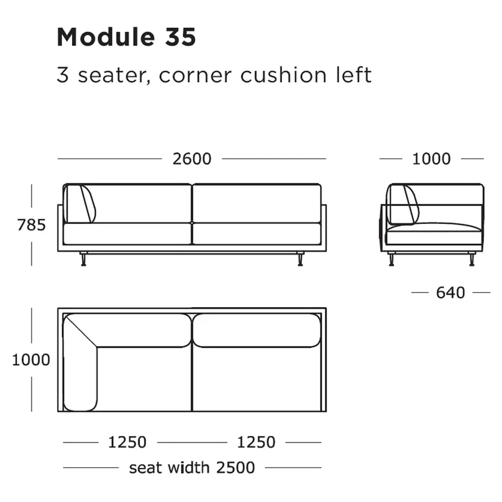 Each module sold separately. Drawn with dimensions that exude comfort, depth and modern elegance, the Maho Sofa is a study in lounging a true retreat for days of slowing down, enhanced through loose cushions with down fill. Crafted as a voluminous low-lying lounge design, the Maho Sofa rests atop a slim and sharply defined frame in black powder-coated steel. The design is available in two seat heights and a range of upholstery options from Wendelbo's curated edit of textiles and leathers. Spanning 43 modules, the design offers a high degree of customizability, further accentuated by complementing design elements in the shape of trays in walnut veneer with a Grey Emperador marble top.