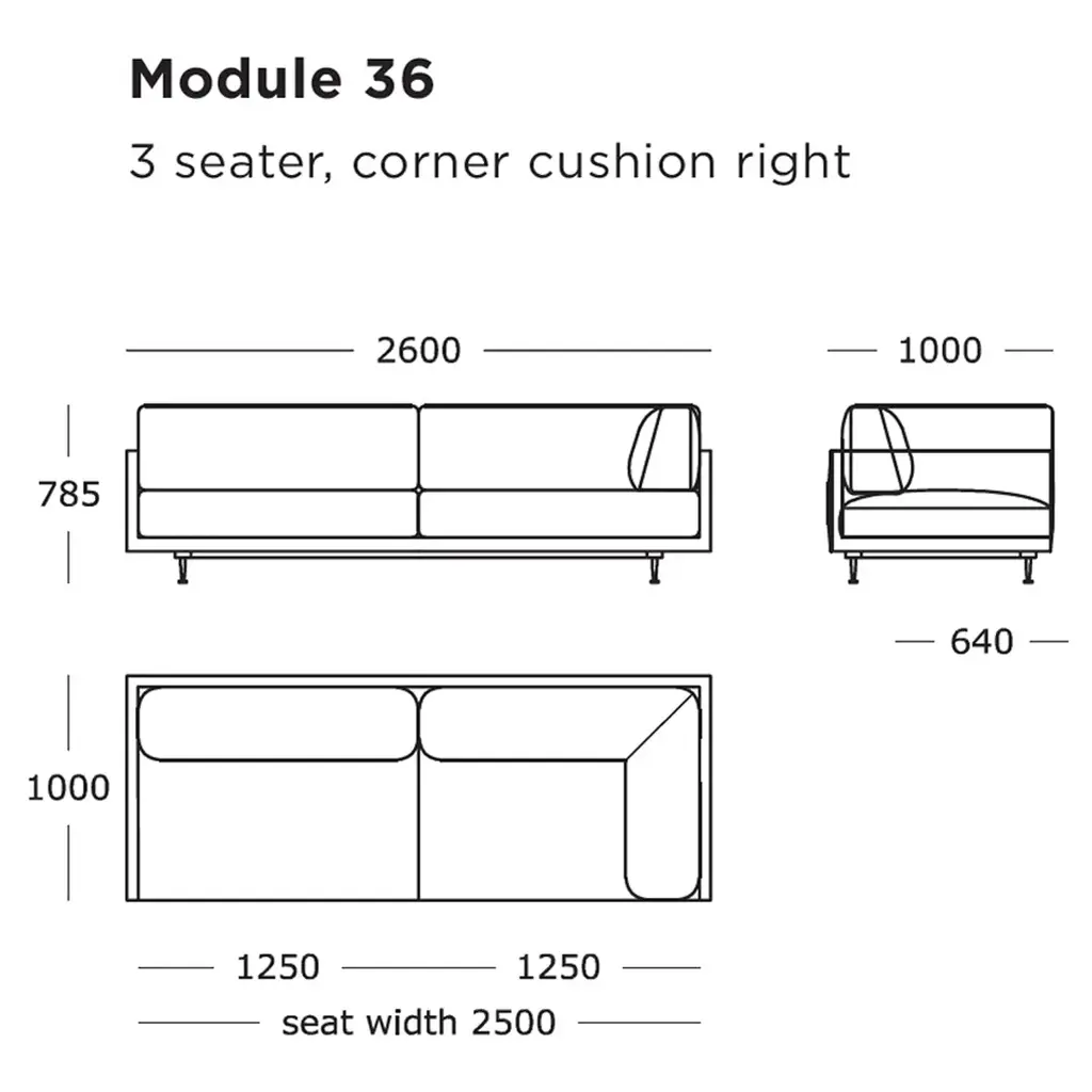 Each module sold separately. Drawn with dimensions that exude comfort, depth and modern elegance, the Maho Sofa is a study in lounging a true retreat for days of slowing down, enhanced through loose cushions with down fill. Crafted as a voluminous low-lying lounge design, the Maho Sofa rests atop a slim and sharply defined frame in black powder-coated steel. The design is available in two seat heights and a range of upholstery options from Wendelbo's curated edit of textiles and leathers. Spanning 43 modules, the design offers a high degree of customizability, further accentuated by complementing design elements in the shape of trays in walnut veneer with a Grey Emperador marble top.