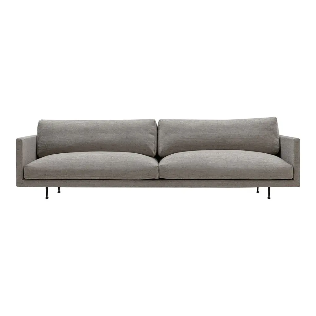 Each module sold separately. Drawn with dimensions that exude comfort, depth and modern elegance, the Maho Sofa is a study in lounging a true retreat for days of slowing down, enhanced through loose cushions with down fill. Crafted as a voluminous low-lying lounge design, the Maho Sofa rests atop a slim and sharply defined frame in black powder-coated steel. The design is available in two seat heights and a range of upholstery options from Wendelbo's curated edit of textiles and leathers. Spanning 43 modules, the design offers a high degree of customizability, further accentuated by complementing design elements in the shape of trays in walnut veneer with a Grey Emperador marble top.