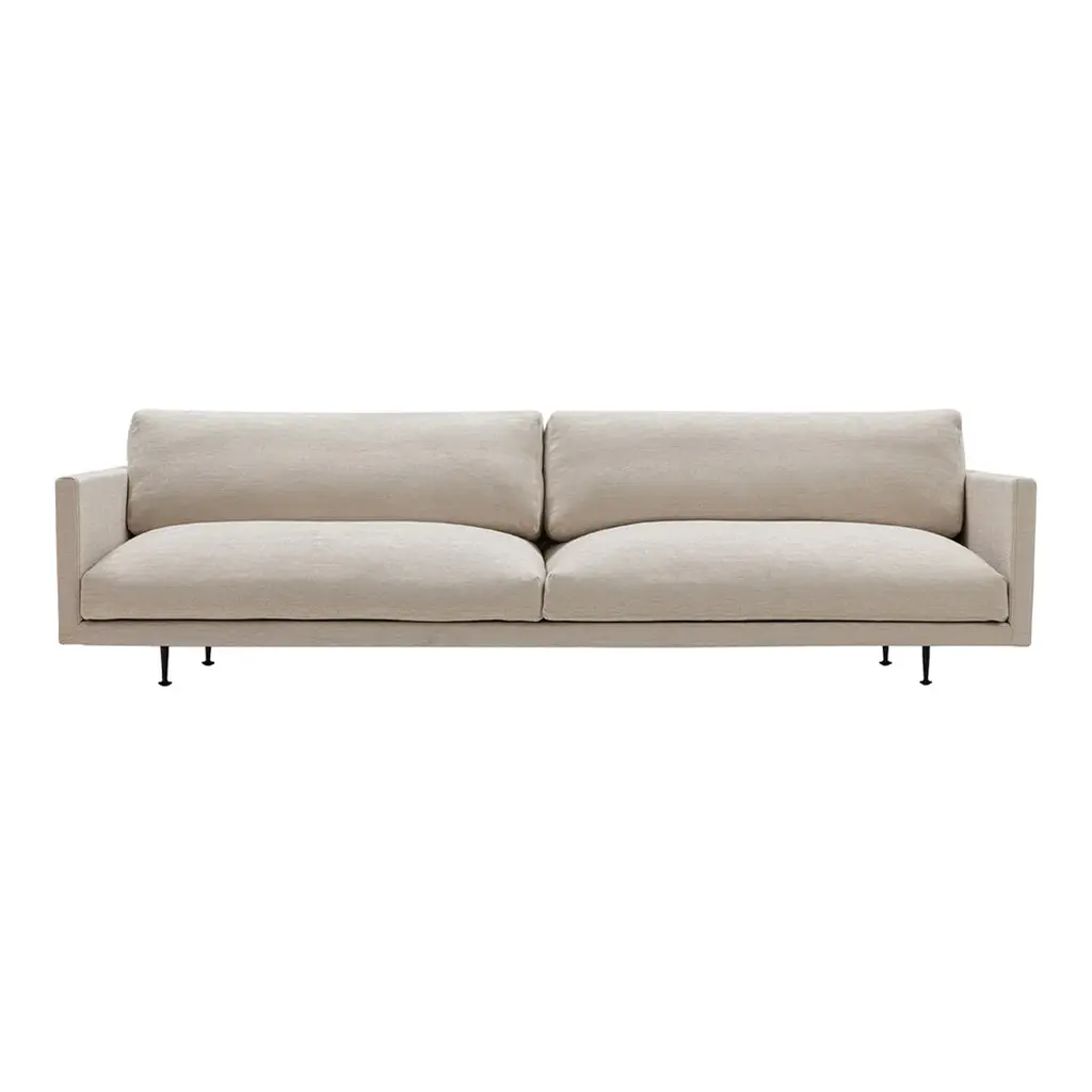 Each module sold separately. Drawn with dimensions that exude comfort, depth and modern elegance, the Maho Sofa is a study in lounging a true retreat for days of slowing down, enhanced through loose cushions with down fill. Crafted as a voluminous low-lying lounge design, the Maho Sofa rests atop a slim and sharply defined frame in black powder-coated steel. The design is available in two seat heights and a range of upholstery options from Wendelbo's curated edit of textiles and leathers. Spanning 43 modules, the design offers a high degree of customizability, further accentuated by complementing design elements in the shape of trays in walnut veneer with a Grey Emperador marble top.