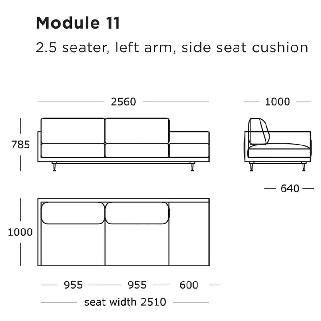 Each module sold separately. Drawn with dimensions that exude comfort, depth and modern elegance, the Maho Sofa is a study in lounging a true retreat for days of slowing down, enhanced through loose cushions with down fill. Crafted as a voluminous low-lying lounge design, the Maho Sofa rests atop a slim and sharply defined frame in black powder-coated steel. The design is available in two seat heights and a range of upholstery options from Wendelbo's curated edit of textiles and leathers. Spanning 43 modules, the design offers a high degree of customizability, further accentuated by complementing design elements in the shape of trays in walnut veneer with a Grey Emperador marble top.