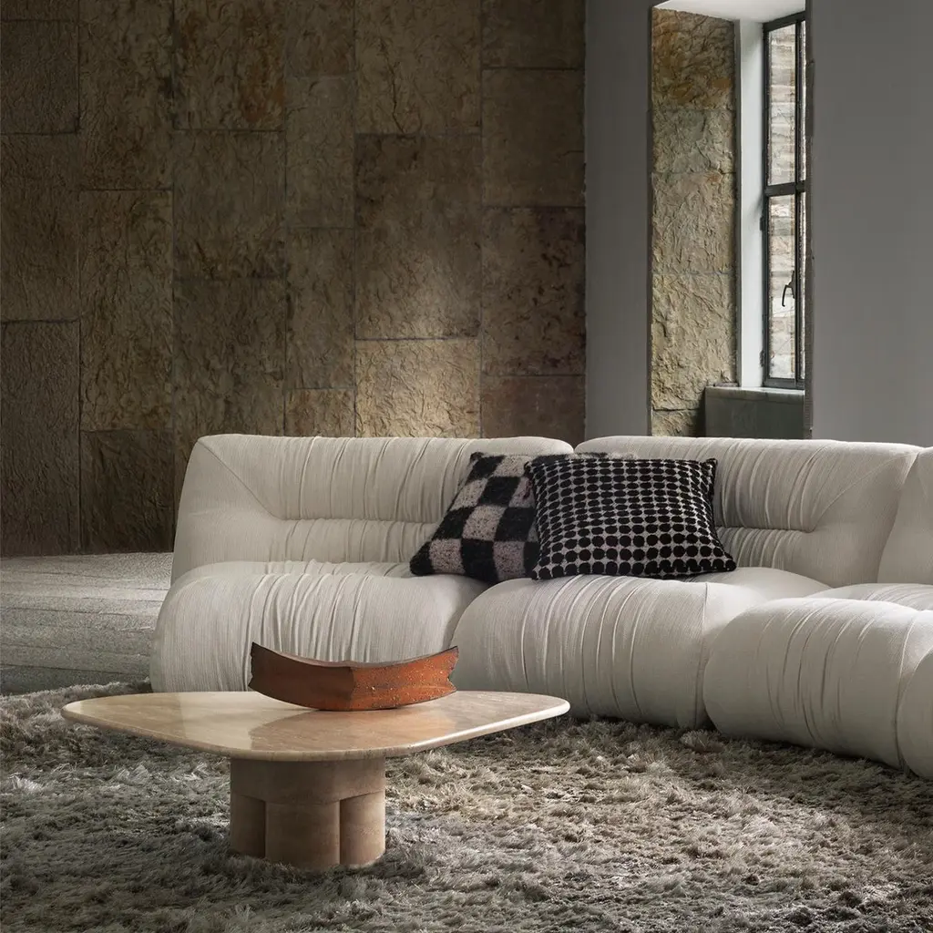 The Mambo modular sofa features a sinuous, flowing design inspired by the elegant movements of the mambo dance. This sofa is composed of multiple modules that harmoniously connect to form a dynamic seating arrangement. Its plush upholstery evokes the vibrant energy and rich textures of tropical landscapes, creating a luxurious yet inviting presence in any living space.