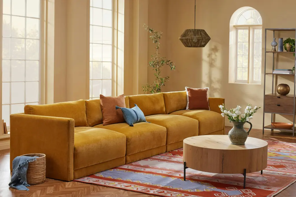 Modern style meets classic versatility with this modular grand sofa. Wider than our usual sofa, which makes it perfect for entertaining and family gatherings alike. Comprised of two Single Arm Chairs and two Armless Chairs the Maurice Modular Grand Sofa features a deep set plush seat, slim arms, and pillowed back, while its modular nature allows you to arrange and rearrange as you see fit.