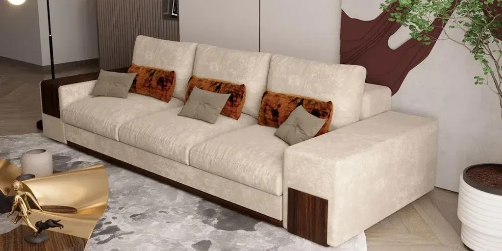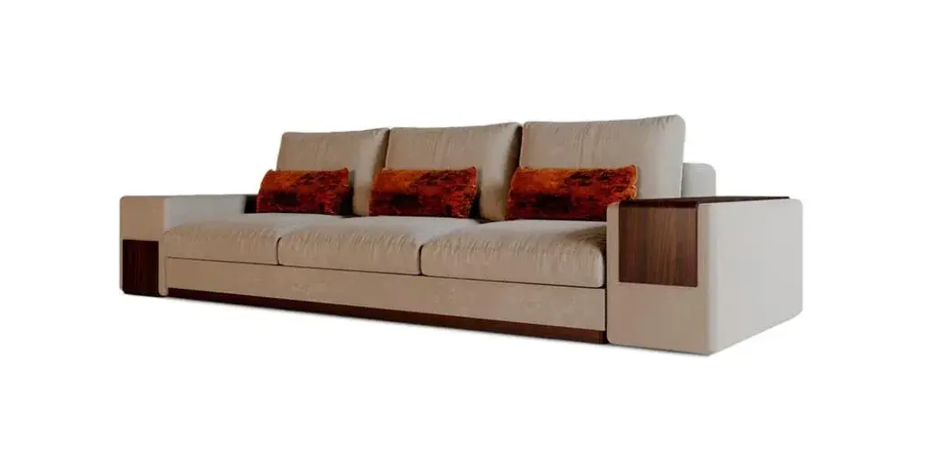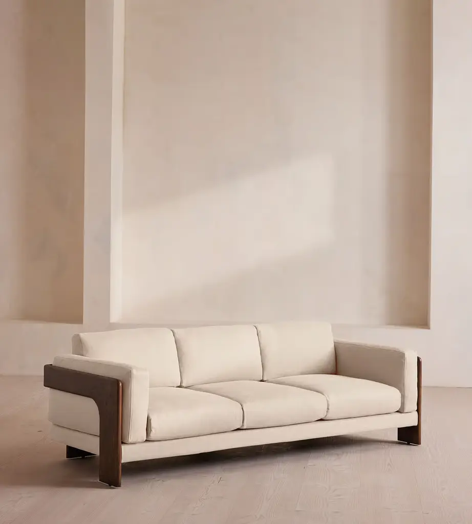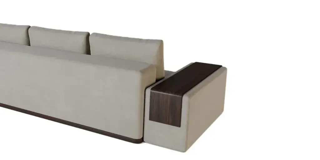 The Mies Sofa refers to the minimalist design of Mies van der Rohe's architecture. Being considered one of the main names in 20th-century architecture, ALMA de LUCE plans to pay homage to the master of minimalism. Through the enveloping comfort of the cushions and armrests that distinguish the MIES style, this is a sofa system that offers maximum compositional versatility, between design minimalism and generous proportions. Labeled by Maker