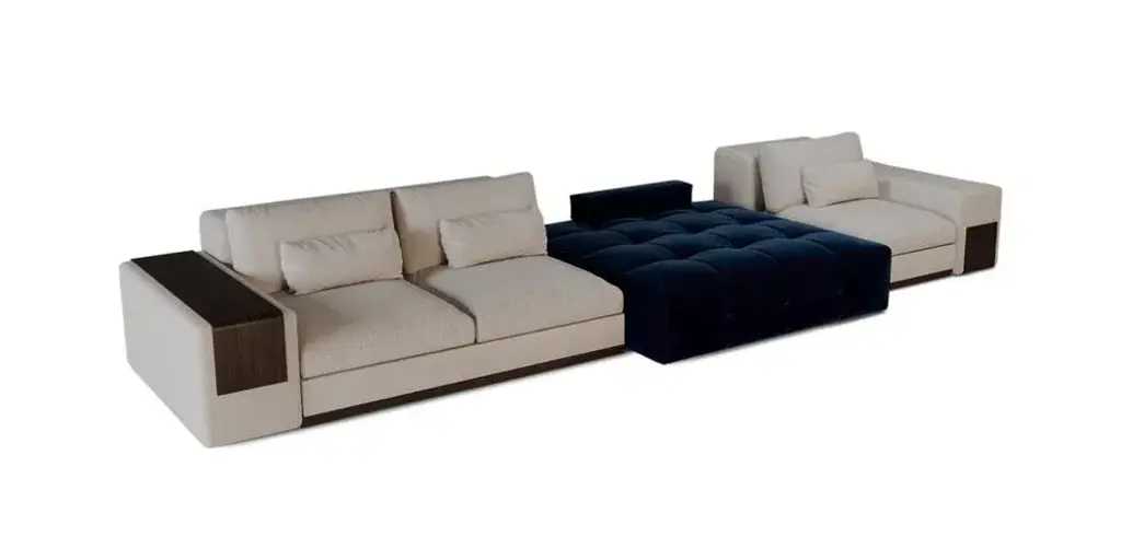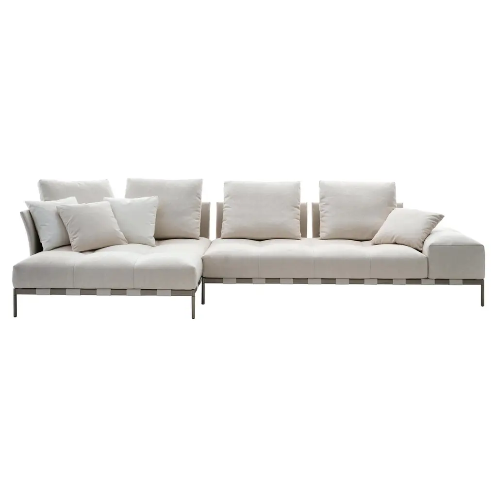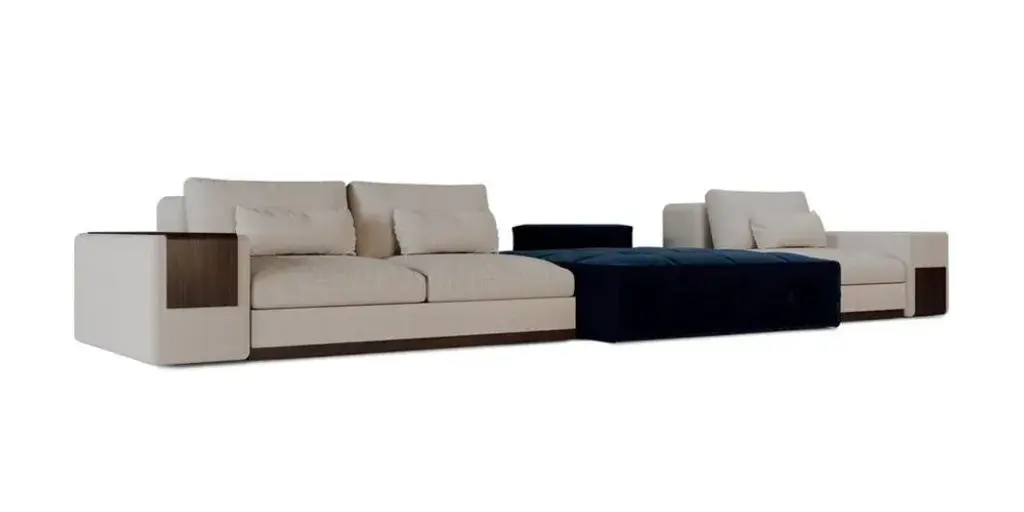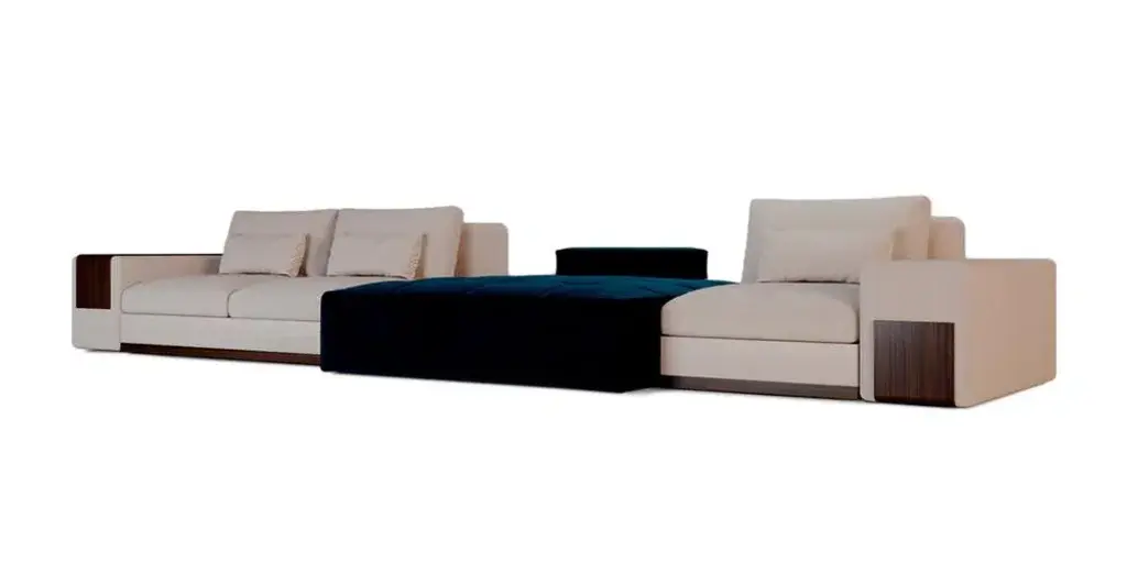 The Mies Sofa refers to the minimalist design of Mies van der Rohe's architecture. Being considered one of the main names in 20th-century architecture, ALMA de LUCE plans to pay homage to the master of minimalism. Through the enveloping comfort of the cushions and armrests that distinguish the MIES style, this is a sofa system that offers maximum compositional versatility, between design minimalism and generous proportions. Labeled by Maker