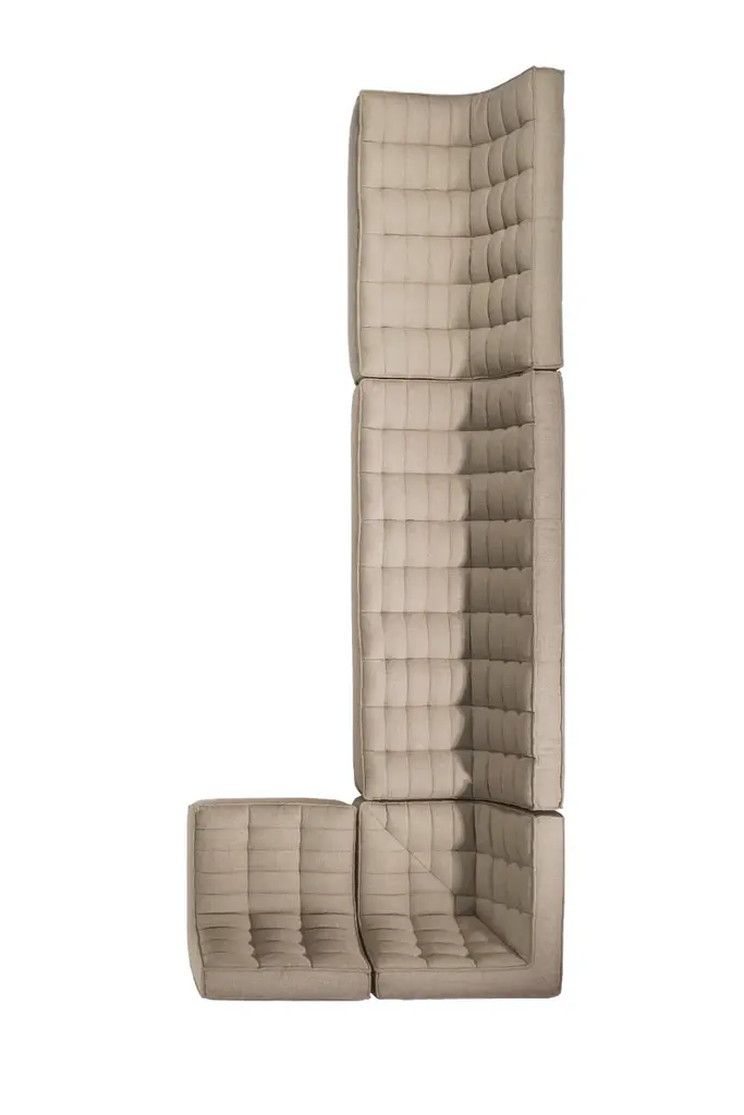 Elevate your living space with the Curved Upholstered Sofa by Ethnicraft where comfort and style combines. The N701 sofa allows you to customize your own unique setting by combining various modules and sizes to suit your space perfectly. Crafted with attention to detail, this corner sofa comes with clips that connect the modules together, ensuring a seamless and secure arrangement. This sofa is not only aesthetically pleasing but also cozy and eco-friendly.