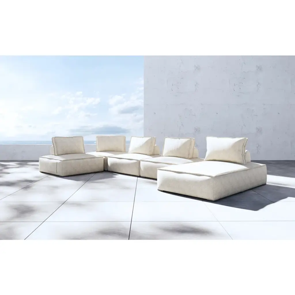 The Hampton Modular Outdoor Sofa: Where indoor comfort meets outdoor durability.Crafted with mold-resistant quick-dry fabric and open-cell foam technology, it's designed to withstand the elements while providing the cozy feel of your living room. With an aluminum frame built to resist rust and weighted back pillows for customizable comfort, every component is thoughtfully engineered for outdoor relaxation. Plus, enjoy the convenience of side pockets for easy storage. Elevate your outdoor space with the Hampton Modular Outdoor Sofa.