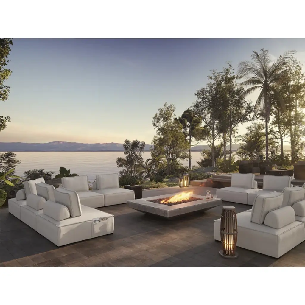 The Hampton Modular Outdoor Sofa: Where indoor comfort meets outdoor durability.Crafted with mold-resistant quick-dry fabric and open-cell foam technology, it's designed to withstand the elements while providing the cozy feel of your living room. With an aluminum frame built to resist rust and weighted back pillows for customizable comfort, every component is thoughtfully engineered for outdoor relaxation. Plus, enjoy the convenience of side pockets for easy storage. Elevate your outdoor space with the Hampton Modular Outdoor Sofa.