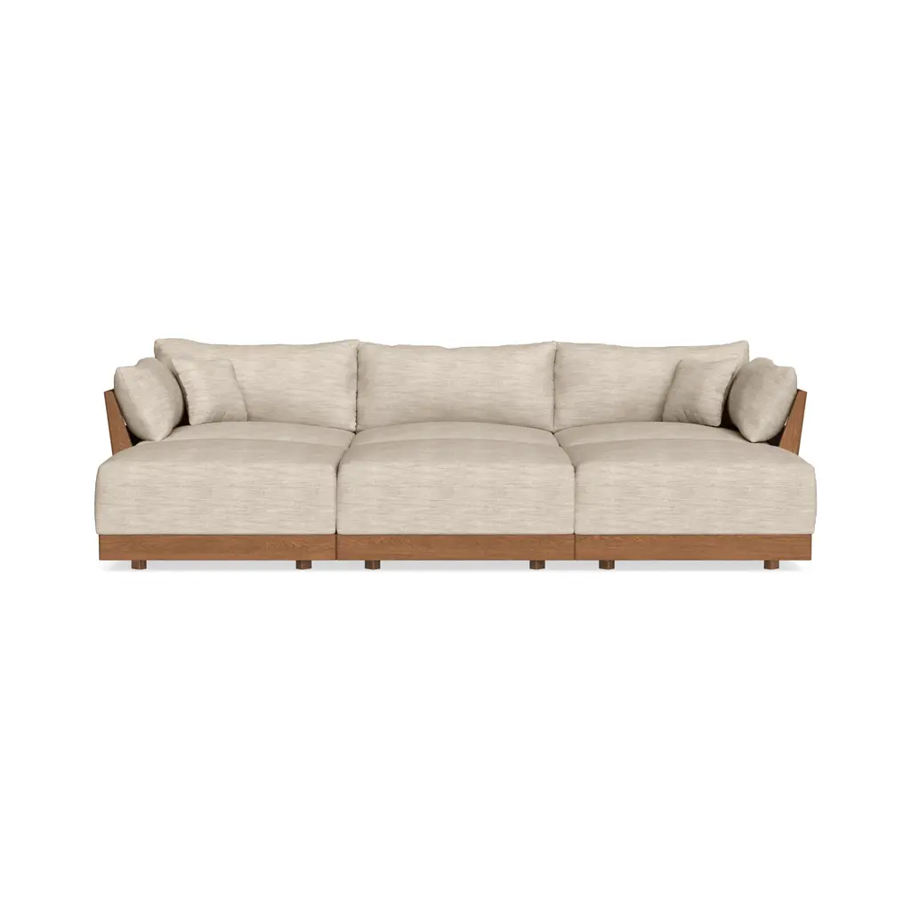 Features Custom Cloud-like Comfort: Oversized cushions, an extra deep seat, a tapered, cradled recline, and a comfort-centric webbing system—Bondi is designed for lavish comfort from the ground up. Choose between our two best selling comfort recipes to find the custom formula that’s right for you. Washable Covers: The entire Bondi Sofa can be undressed and washed with our patent pending design. All fabric covers feature concealed zippers for easy removal and cleaning. Extra slipcovers are available for purchase. Life-Proof Seating: Designed to handle everything from dirty paws to sharp claws, our fabric collection includes high performance options that are Machine Washable, Liquid Repellent, Stain Resistant, & Pet-Friendly. Each pillow is wrapped in a patent pending, water-resistant liner and each seat cushion features moisture-wicking air mesh for additional protection. Modular: Reconfigurable, patent pending modules, made to move and adapt with your ever-changing lifestyle. Designed to fit anywhere—great for small & large spaces alike. Sustainable Craftsmanship: Bondi’s kiln-dried solid ash wood frame is FSC-Certified. Our comfort formulas feature low impact eco-foam that upcycles disposable bottles. One sofa = roughly 400 recycled plastic bottles. All foam is CertiPUR-US®, free of ozone depletors.