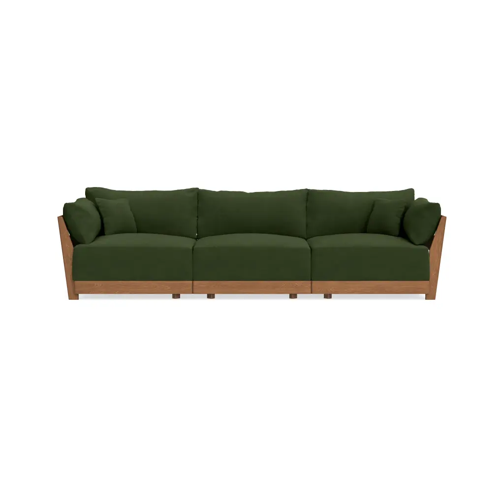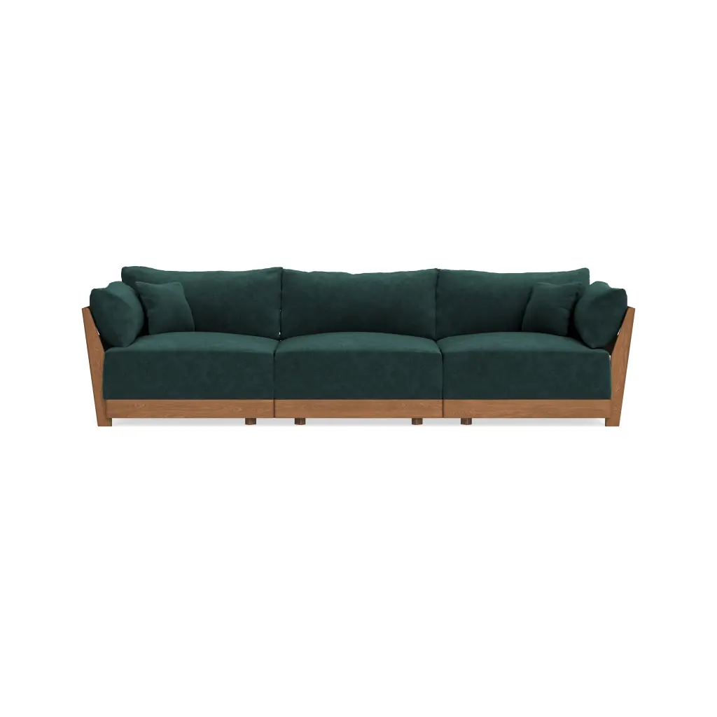 Features Custom Cloud-like Comfort: Oversized cushions, an extra deep seat, a tapered, cradled recline, and a comfort-centric webbing system—Bondi is designed for lavish comfort from the ground up. Choose between our two best selling comfort recipes to find the custom formula that’s right for you. Washable Covers: The entire Bondi Sofa can be undressed and washed with our patent pending design. All fabric covers feature concealed zippers for easy removal and cleaning. Extra slipcovers are available for purchase. Life-Proof Seating: Designed to handle everything from dirty paws to sharp claws, our fabric collection includes high performance options that are Machine Washable, Liquid Repellent, Stain Resistant, & Pet-Friendly. Each pillow is wrapped in a patent pending, water-resistant liner and each seat cushion features moisture-wicking air mesh for additional protection. Modular: Reconfigurable, patent pending modules, made to move and adapt with your ever-changing lifestyle. Designed to fit anywhere—great for small & large spaces alike. Sustainable Craftsmanship: Bondi’s kiln-dried solid ash wood frame is FSC-Certified. Our comfort formulas feature low impact eco-foam that upcycles disposable bottles. One sofa = roughly 400 recycled plastic bottles. All foam is CertiPUR-US®, free of ozone depletors.