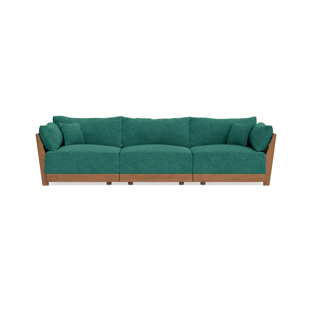 Features Custom Cloud-like Comfort: Oversized cushions, an extra deep seat, a tapered, cradled recline, and a comfort-centric webbing system—Bondi is designed for lavish comfort from the ground up. Choose between our two best selling comfort recipes to find the custom formula that’s right for you. Washable Covers: The entire Bondi Sofa can be undressed and washed with our patent pending design. All fabric covers feature concealed zippers for easy removal and cleaning. Extra slipcovers are available for purchase. Life-Proof Seating: Designed to handle everything from dirty paws to sharp claws, our fabric collection includes high performance options that are Machine Washable, Liquid Repellent, Stain Resistant, & Pet-Friendly. Each pillow is wrapped in a patent pending, water-resistant liner and each seat cushion features moisture-wicking air mesh for additional protection. Modular: Reconfigurable, patent pending modules, made to move and adapt with your ever-changing lifestyle. Designed to fit anywhere—great for small & large spaces alike. Sustainable Craftsmanship: Bondi’s kiln-dried solid ash wood frame is FSC-Certified. Our comfort formulas feature low impact eco-foam that upcycles disposable bottles. One sofa = roughly 400 recycled plastic bottles. All foam is CertiPUR-US®, free of ozone depletors.