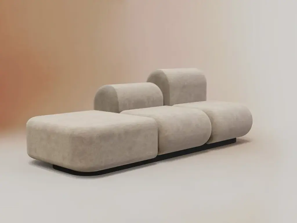Modular Greige Fabric Sofa With Volumetric Design, Customizable - Ruy Line