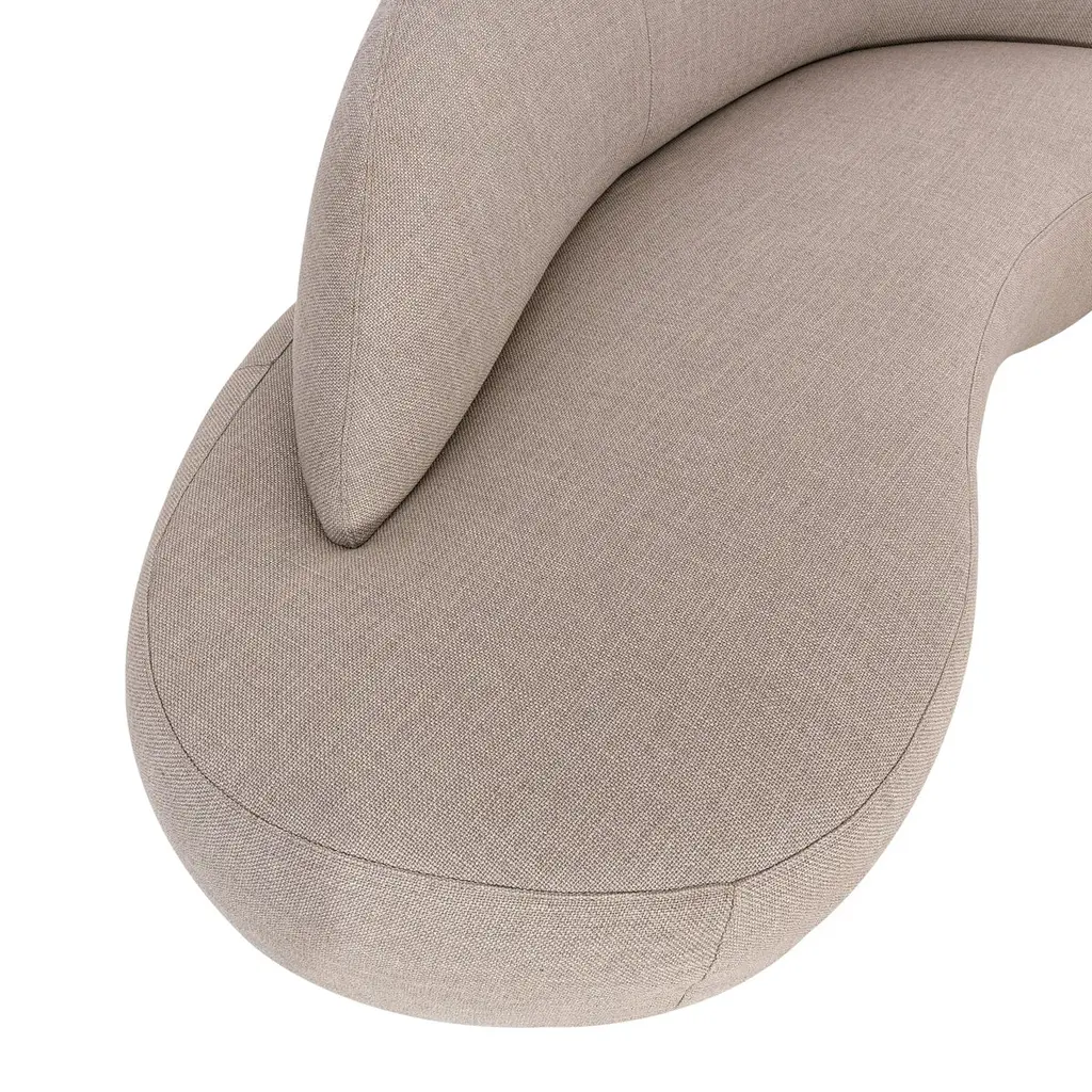 A Ruy sofa designed by Sérgio Batista for Uultis with greige fabric. The Ruy Sofa is a luxurious and eco-conscious addition to any modern living space. This modular sofa, upholstered in a premium greige fabric, captures the essence of contemporary elegance with its asymmetrical form that gracefully curves to the sides, drawing the eye and providing a visual anchor in any room. Inspired by the fluid lines and organic forms of Brazilian architecture, the Ruy Sofa seamlessly blends a striking silhouette with soft, inviting textures, making it the perfect centerpiece for minimalist, modern, or eclectic interiors.The sofa features a solid wood structure made from sustainably sourced materials, combined with medium-density foam and elastic bands on the seat, ensuring comfort and durability. Uultis is dedicated to environmental sustainability, using only eco-friendly materials and responsible manufacturing practices to create furniture that reflects a commitment to both quality and the environment. This set includes both left and right modules, sold together, to create a cohesive seating arrangement. The soft density comfort level of the sofa invites relaxation, while its versatile design allows it to blend effortlessly with various decor styles. Perfect for a living room or an open-plan space, the Ruy Sofa provides an elegant spot for lounging, entertaining, or simply enjoying a quiet moment at home. The unique blend of greige tones in the Twill Weave fabric adds a subtle sophistication, while the sofa's design hints at the organic and light traces of Ruy Ohtake's iconic works, creating an exquisite statement of contemporary luxury and sustainability. The module to the right measures 110"W x 39"D x 31"H while the module to the left measure 98"W x 39"D x 31"H.