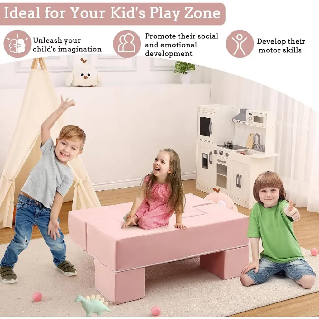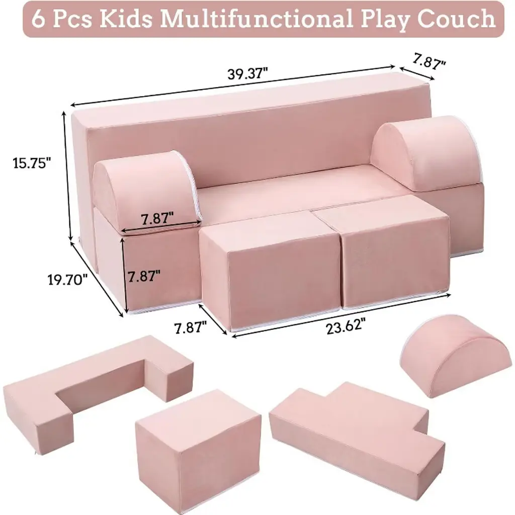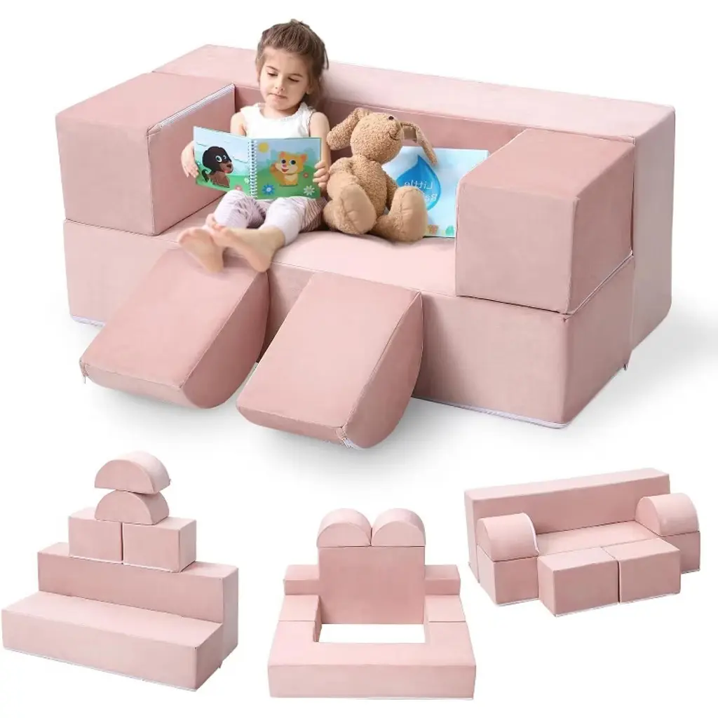 Modular Kids Couch For Toddlers And Kids Foam Play Sofa Set With Detachable Cushions Convertible Soft Couch For Bedroom Or Playroom Pink