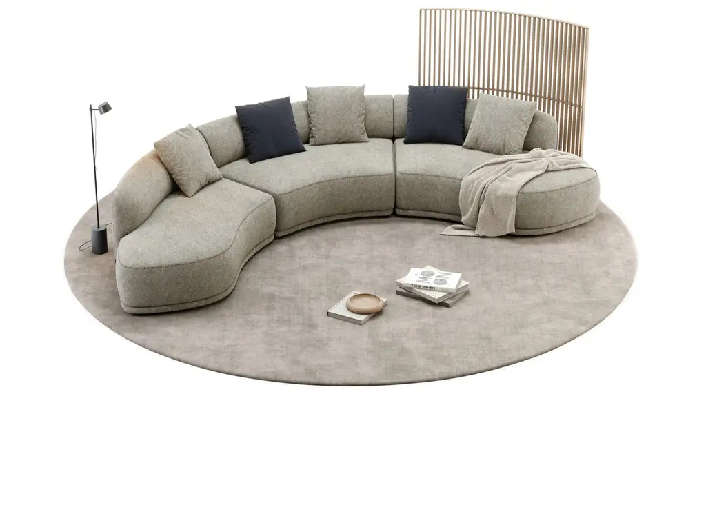 Modular Rounded Bulky Sofa With Upholstered Footer