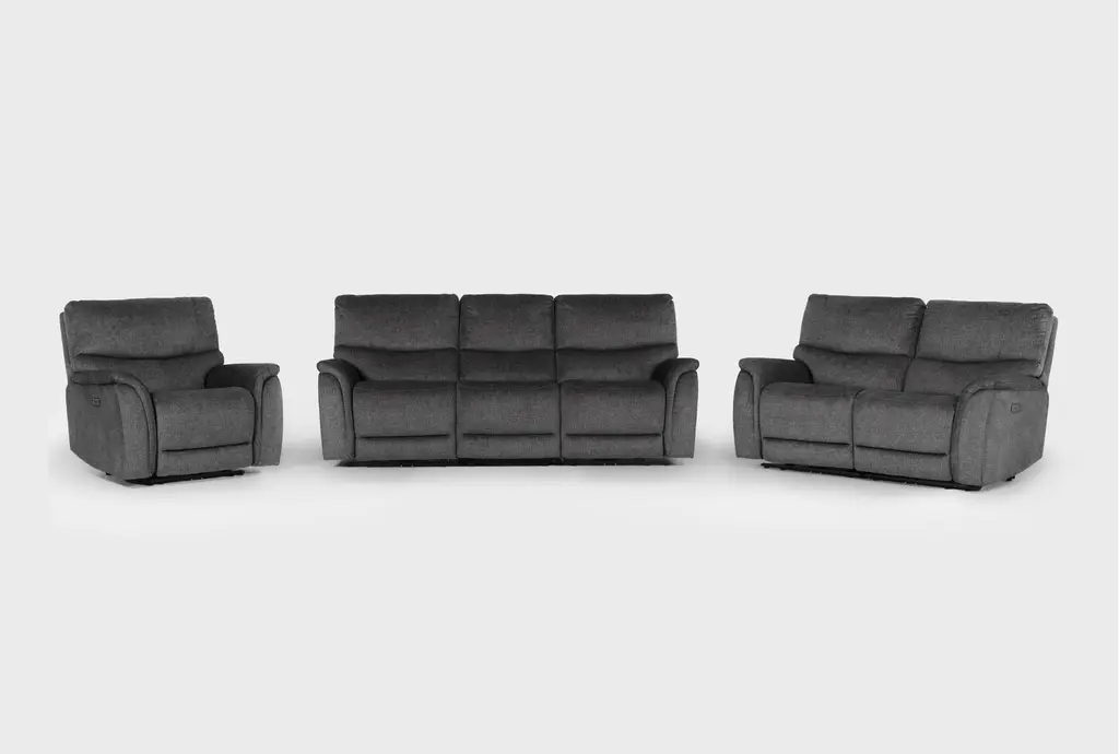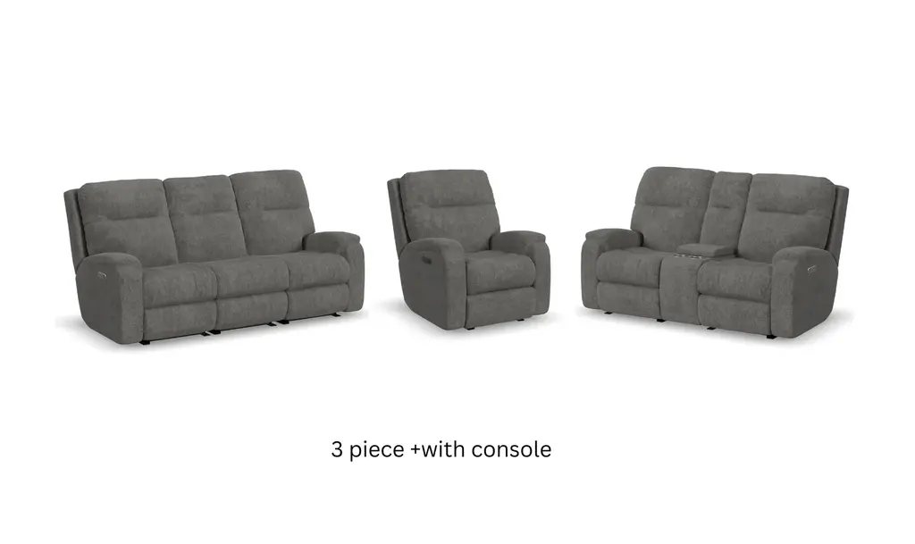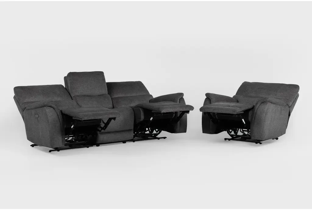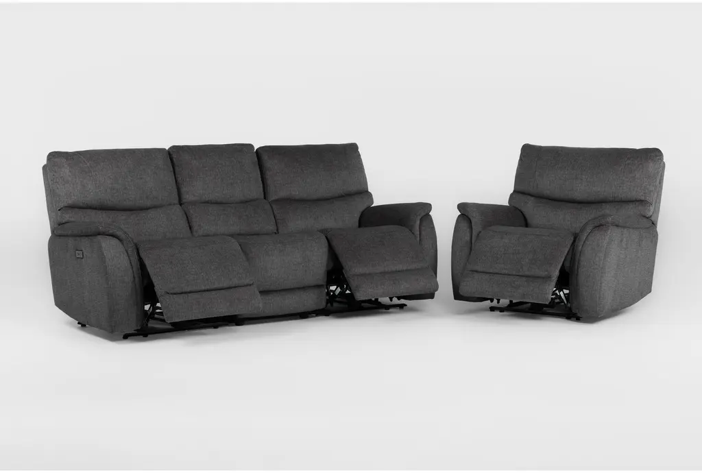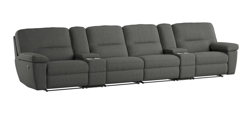 Introducing the Nash 4 Piece Power Reclining Modular Sofa and Recliner Set, perfect for your living room. This casual set in gunmetal fabric offers both comfort and style, making it an ideal addition to any home.