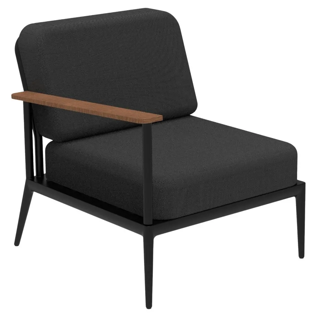 Nature Black central modular sofa by MOWEEDimensions: D83 x W68 x H81 cm (seat height 42 cm).Material: Aluminum and upholstery.Weight: 17 kg.Also available in different colors and finishes.An unmistakable collection for its beauty and robustness. A tribute to the Valencian manufacturing tradition as a challenge to innovation, making it sustainable and durable. A fresher version, Nature. It presents touches of natural and sustainable wood, which gives warmth and comfort, and makes it a unique collection.Möwee is part of the work, effort and commitment of Gaviota, a leading company in the outdoor sector. It was set up as an independent venture to broaden horizons in the outdoor furniture world, with its own distinctive character and way of doing things. Freshness, simplicity, quality and design are at the heart of its DNA.