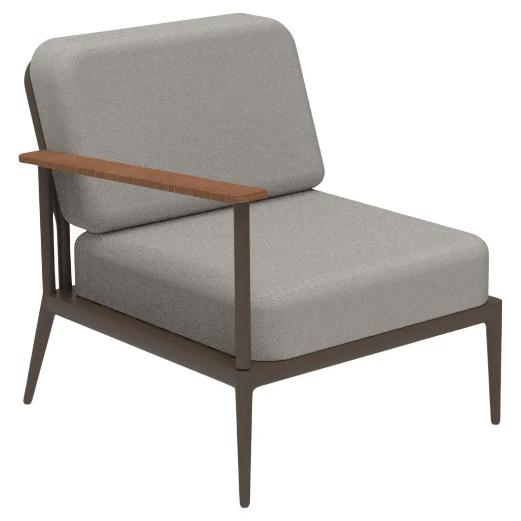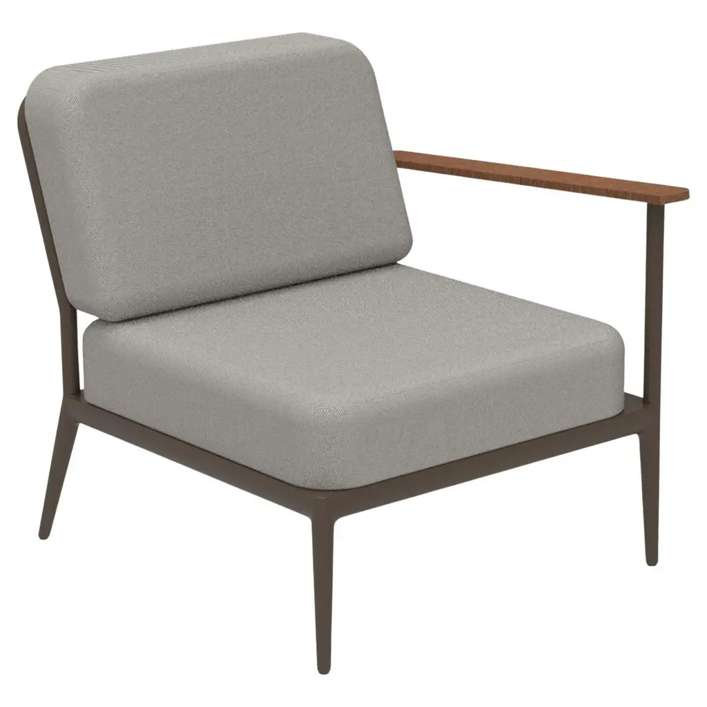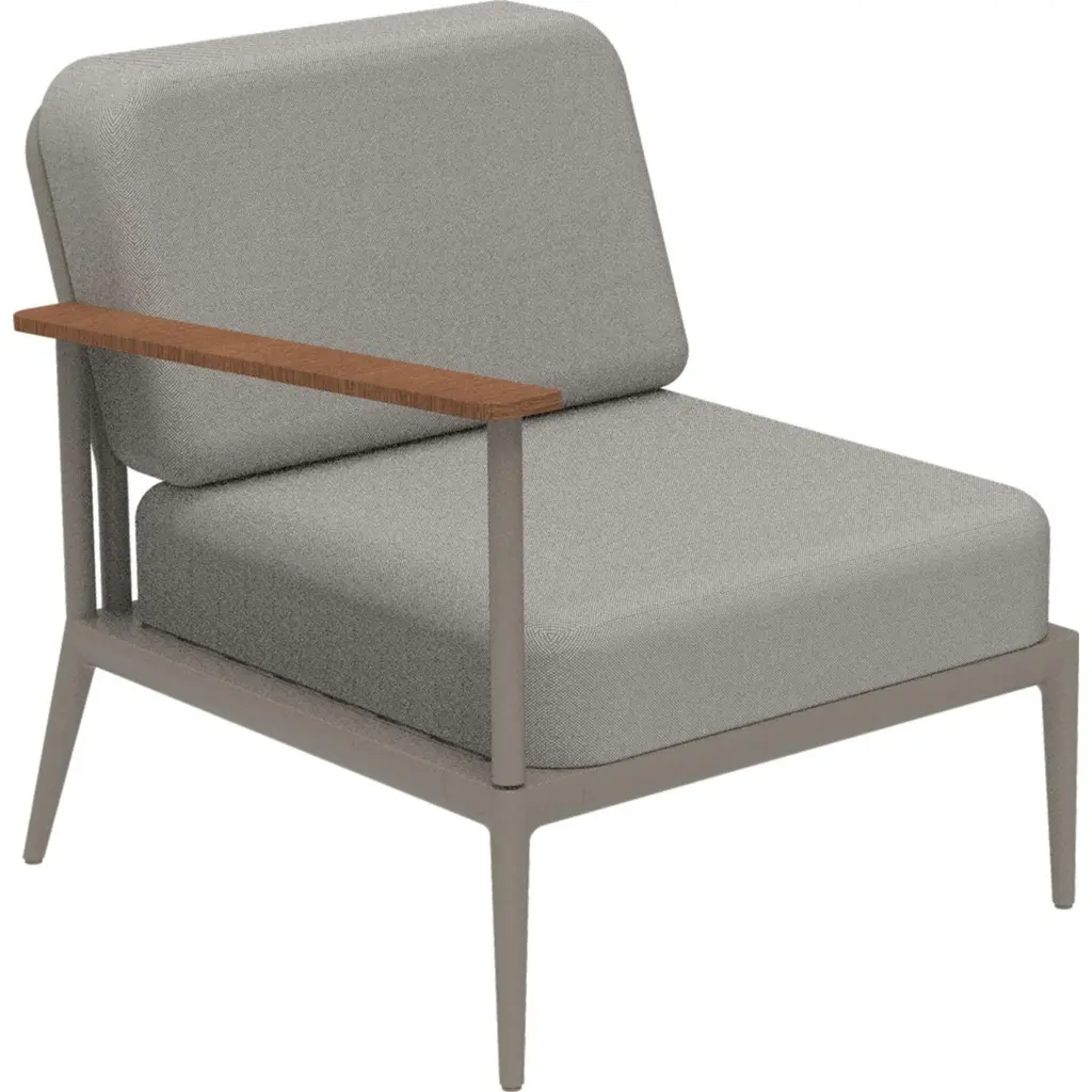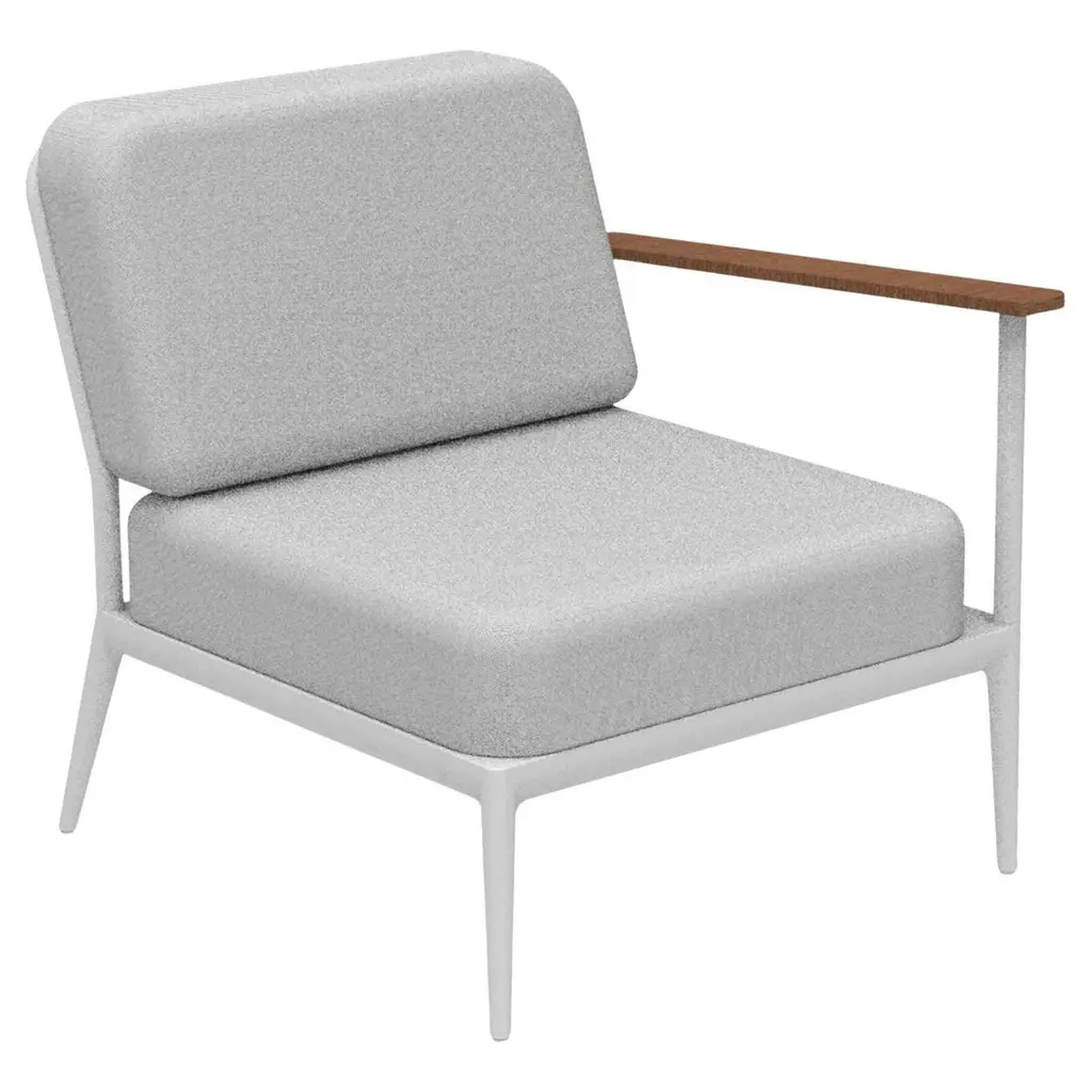 Nature Cream Right modular sofa by MOWEEDimensions: D85 x W76 x H81 cm (seat height 42 cm).Material: Aluminum, upholstery and Iroko Wood.Weight: 19 kg.Also available in different colors and finishes. An unmistakable collection for its beauty and robustness. A tribute to the Valencian manufacturing tradition as a challenge to innovation, making it sustainable and durable. A fresher version, Nature. It presents touches of natural and sustainable wood, which gives warmth and comfort, and makes it a unique collection.Möwee is part of the work, effort and commitment of Gaviota, a leading company in the outdoor sector. It was set up as an independent venture to broaden horizons in the outdoor furniture world, with its own distinctive character and way of doing things. Freshness, simplicity, quality and design are at the heart of its DNA.