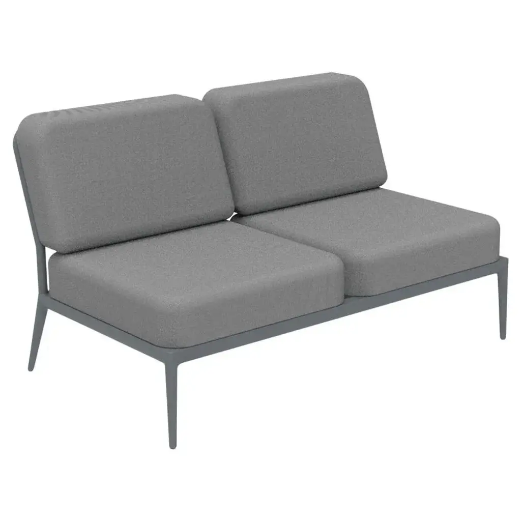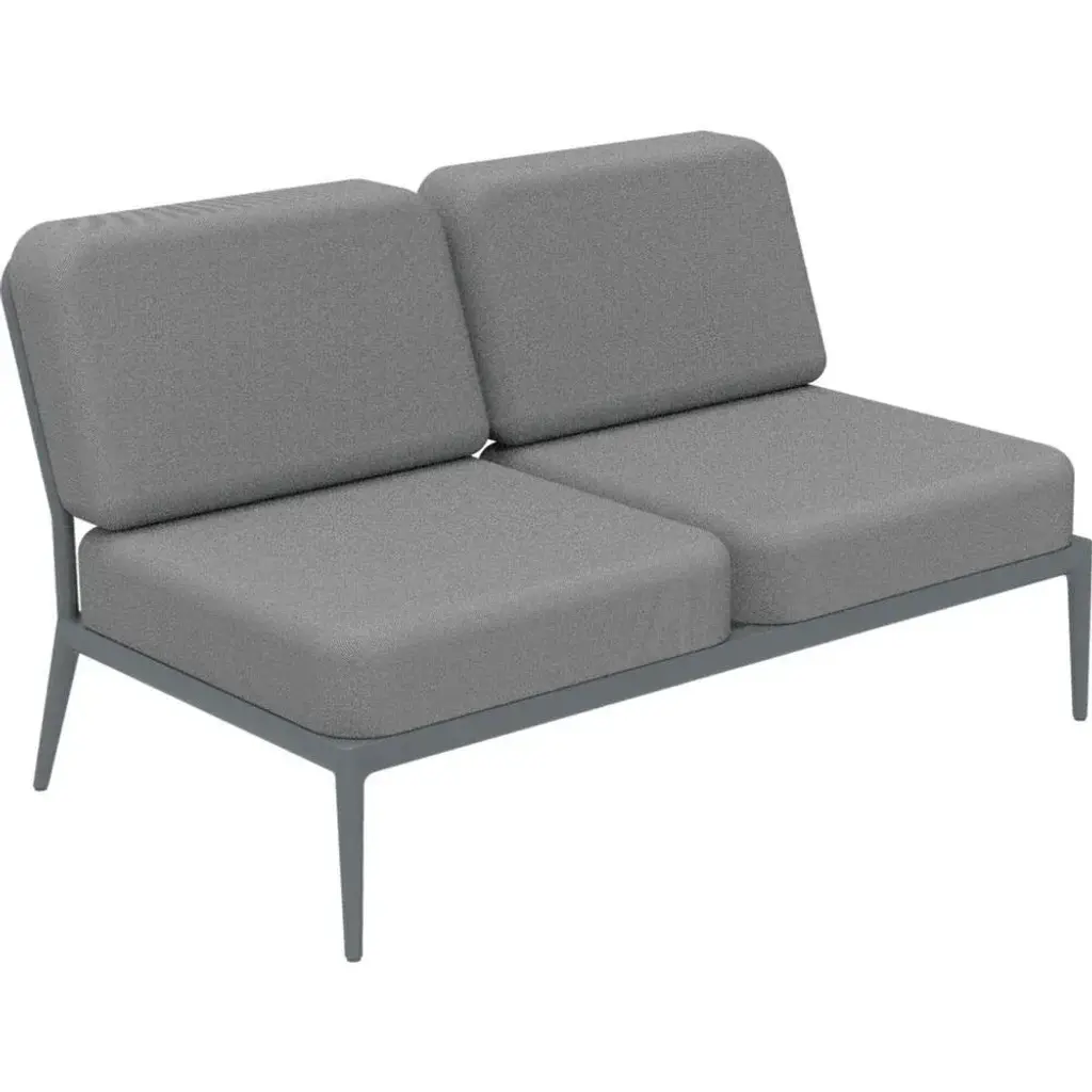 Nature grey double central modular sofa by mowee dimensions: d83 x w136 x h81 cm (seat height 42 cm). Material: aluminum and upholstery. Weight: 27 kg. Also available in different colors and finishes. An unmistakable collection for its beauty and robustness. A tribute to the valencian manufacturing tradition as a challenge to innovation, making it sustainable and durable. A fresher version, nature. It presents touches of natural and sustainable wood, which gives warmth and comfort, and makes it a unique collection.