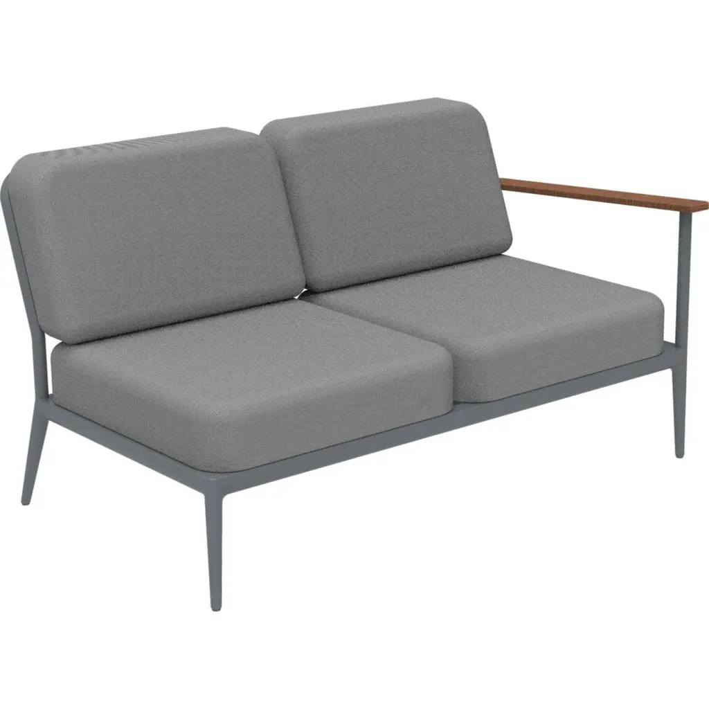 Nature Grey Double Left modular sofa by MOWEEDimensions: D85 x W144 x H81 cm (seat height 42 cm).Material: Aluminum, upholstery and Iroko Wood.Weight: 29 kg.Also available in different colors and finishes. An unmistakable collection for its beauty and robustness. A tribute to the Valencian manufacturing tradition as a challenge to innovation, making it sustainable and durable. A fresher version, Nature. It presents touches of natural and sustainable wood, which gives warmth and comfort, and makes it a unique collection.Möwee is part of the work, effort and commitment of Gaviota, a leading company in the outdoor sector. It was set up as an independent venture to broaden horizons in the outdoor furniture world, with its own distinctive character and way of doing things. Freshness, simplicity, quality and design are at the heart of its DNA.