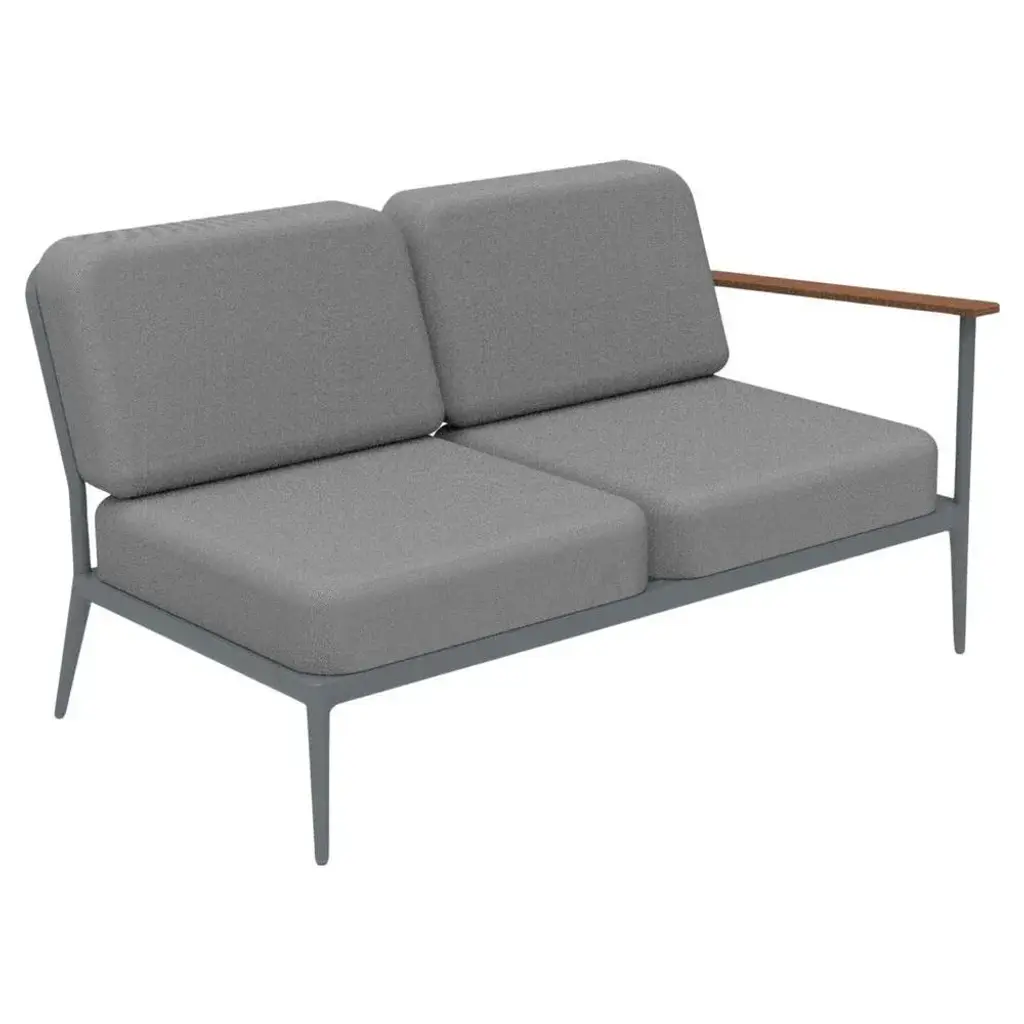 Nature grey double left modular sofa by mowee dimensions: d85 x w144 x h81 cm (seat height 42 cm). Material: aluminum, upholstery and iroko wood. Weight: 29 kg. Also available in different colors and finishes. An unmistakable collection for its beauty and robustness. A tribute to the valencian manufacturing tradition as a challenge to innovation, making it sustainable and durable. A fresher version, nature. It presents touches of natural and sustainable wood, which gives warmth and comfort, and makes it a unique collection. Möwee is part of the work, effort and commitment of gaviota, a leading company in the outdoor sector. It was set up as an independent venture to broaden horizons in the outdoor furniture world, with its own distinctive character and way of doing things. Freshness, simplicity, quality and design are at the heart of its dna.