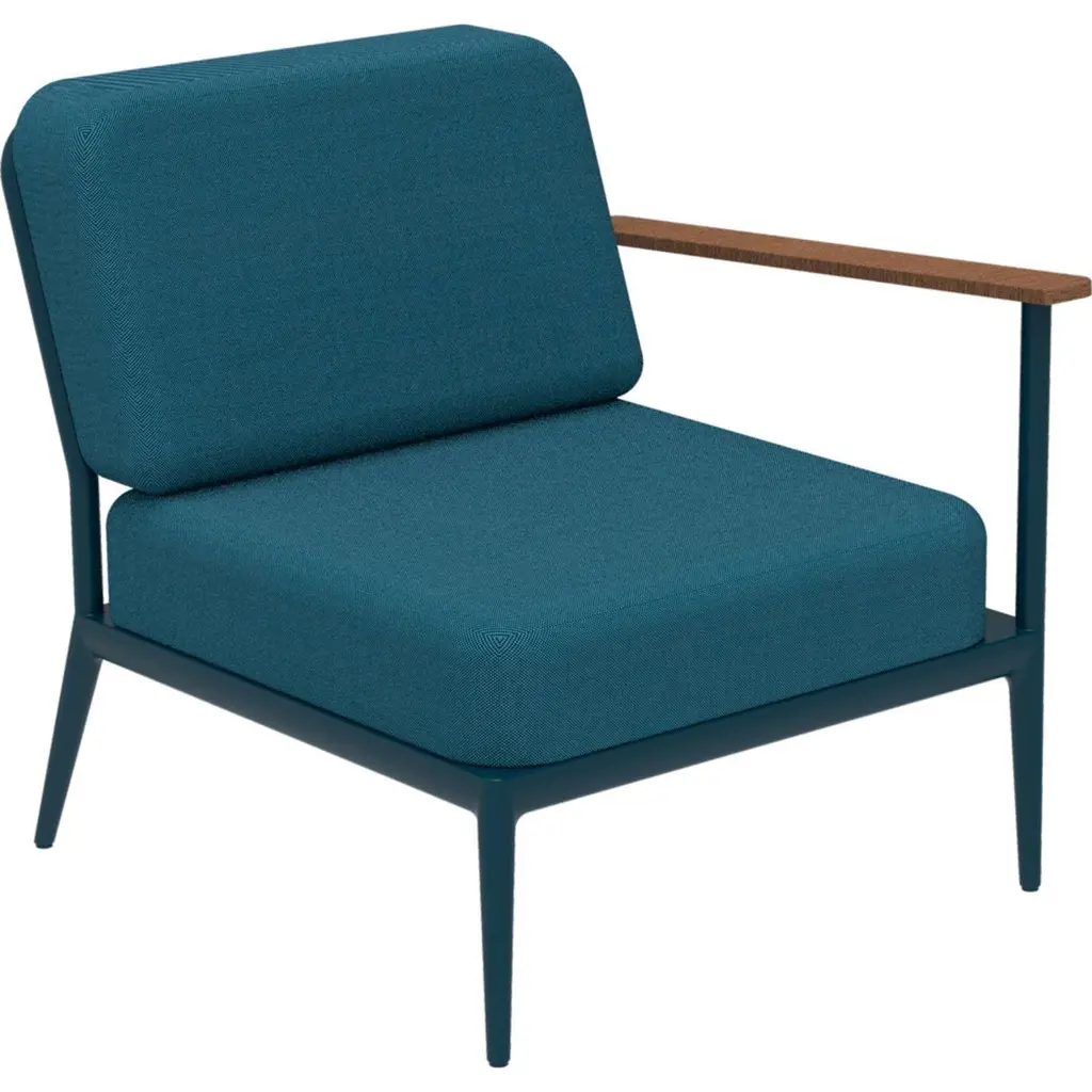 Nature navy left modular sofa by MOWEEDimensions: D85 x W76 x H81 cm (seat height 42 cm).Material: Aluminium, upholstery and Iroko Wood.Weight: 19 kg.Also available in different colors and finishes.An unmistakable collection for its beauty and robustness. A tribute to the Valencian manufacturing tradition as a Challenge to innovation, making it sustainable and durable. A fresher version, Nature. It presents touches of natural and sustainable wood, which gives warmth and comfort, and makes it a unique collection.Möwee is part of the work, effort and commitment of Gaviota, a leading company in the outdoor sector. It was set up as an independent venture to broaden horizons in the outdoor furniture world, with its own distinctive character and way of doing things. Freshness, simplicity, quality and design are at the heart of its DNA.