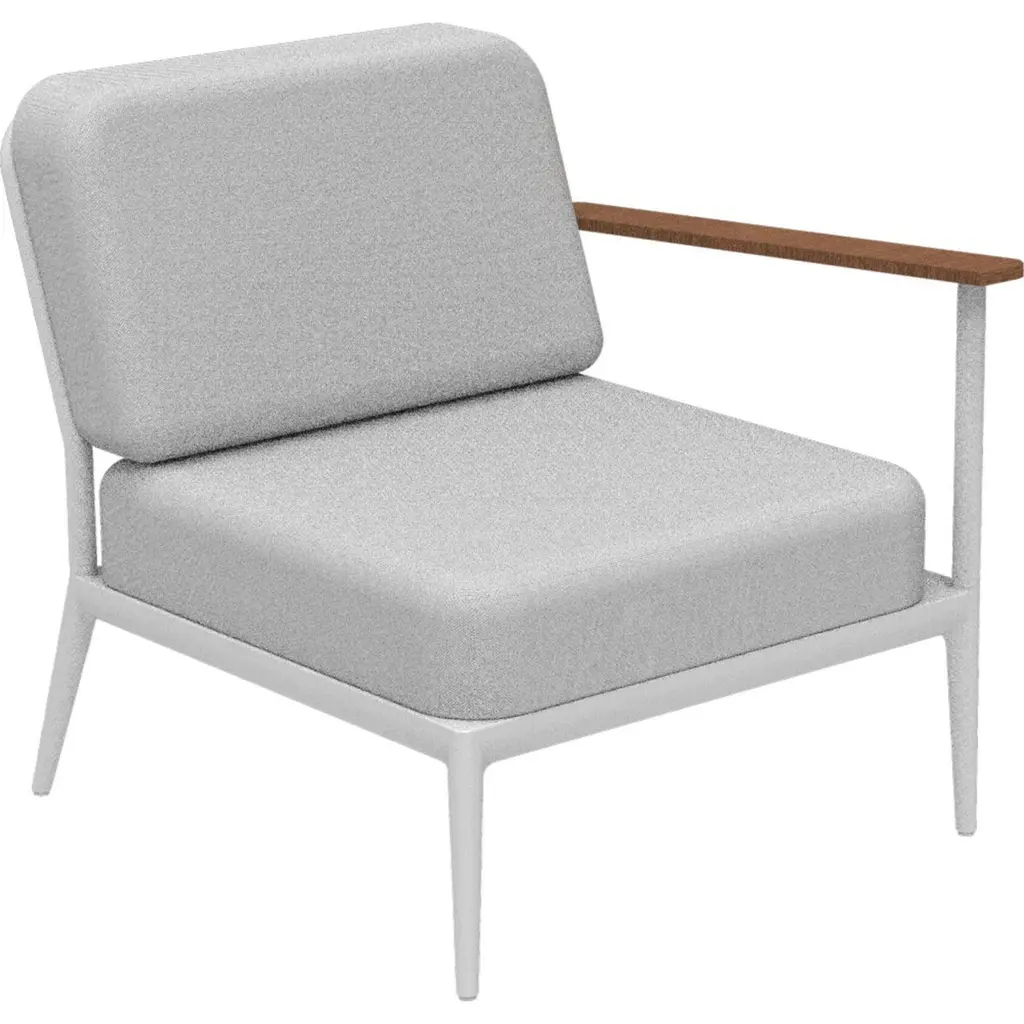 Nature White Left Modular sofa by MOWEEDimensions: D85 x W76 x H81 cm (seat height 42 cm).Material: Aluminium, upholstery and Iroko Wood.Weight: 19 kg.Also available in different colors and finishes.An unmistakable collection for its beauty and robustness. A tribute to the Valencian manufacturing tradition as a Challenge to innovation, making it sustainable and durable. A fresher version, Nature. It presents touches of natural and sustainable wood, which gives warmth and comfort, and makes it a unique collection.Möwee is part of the work, effort and commitment of Gaviota, a leading company in the outdoor sector. It was set up as an independent venture to broaden horizons in the outdoor furniture world, with its own distinctive character and way of doing things. Freshness, simplicity, quality and design are at the heart of its DNA.
