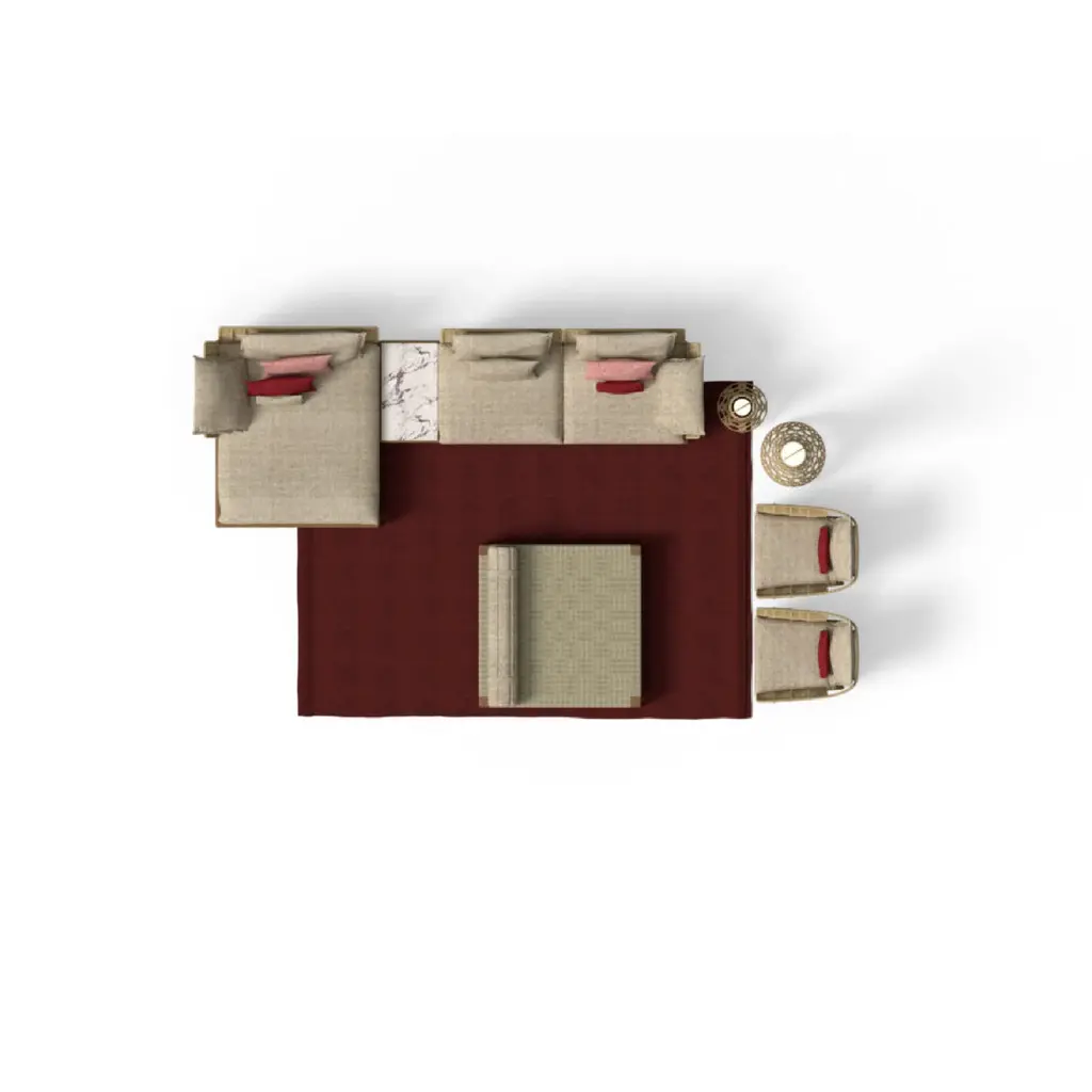Extremely versatile, the Modular Sofa of the Cruise Teak Collection is perfect for designing your outside living area. Entirely modular, the product maintains the collection's quality and style. The structure of its modules is indeed made of wood. The synthetic rope is used for the cover of armrests and backrest. The cushions' fabric, carefully selected, makes the sofa weatherproof. The natural and light colours proposed by this collection, together with the various combinations supplied by the product's modules, make the Modular Sofa ideal for each outside environment.
