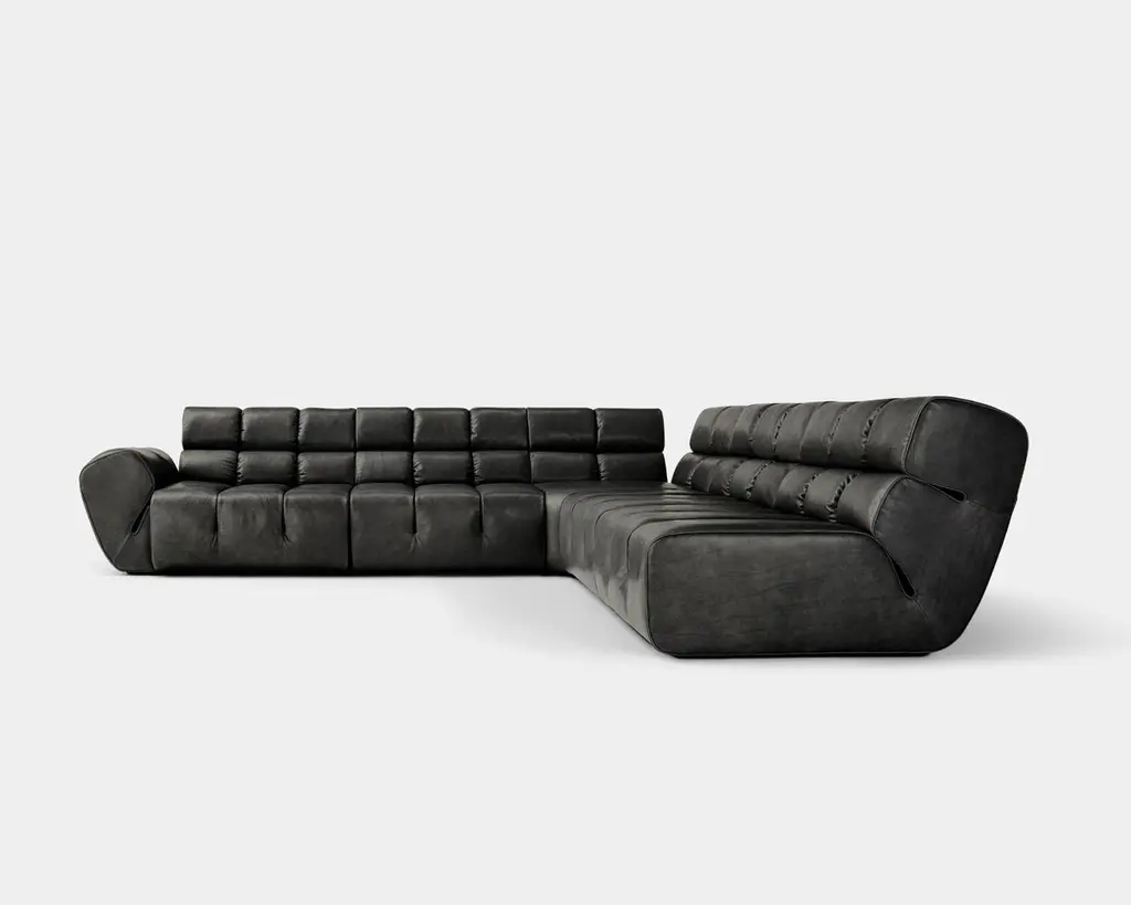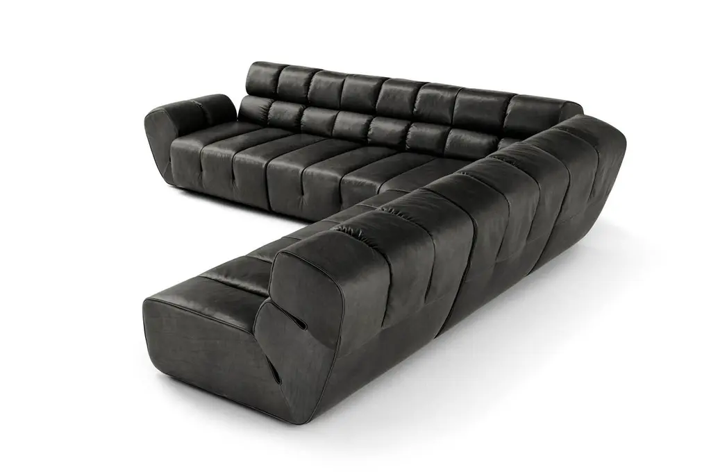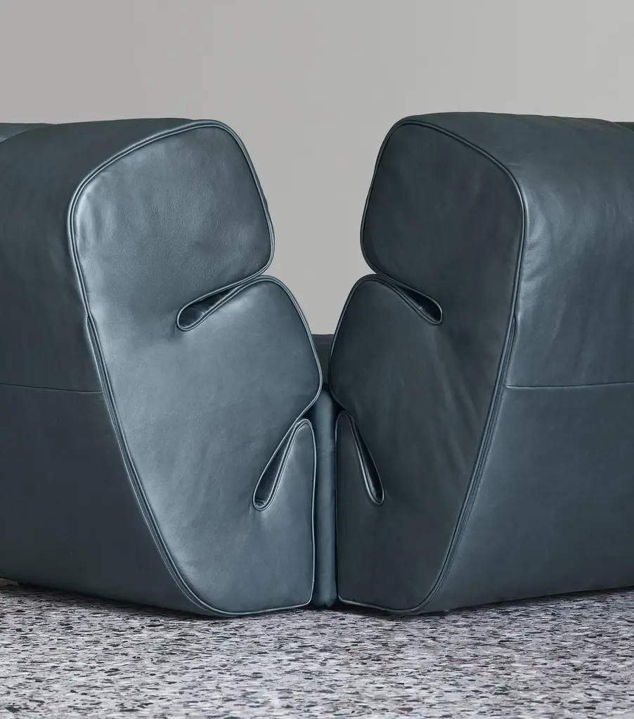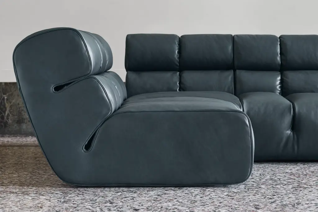 Sectional sofa Palmo by Amura Lab Designer: Emanuel GarganoModel shown: Leather - Stone Wash 263 Inspired by the natural gesture of an opening hand, Palmo is the new living concept designed by Emanuel Gargano.The leather folds become the exceptional characteristics of its embracing nature, as an unmistakable sign that takes us back to the roots of our history.The modular elements design the space, taking turns the most classic shapes to the most irregular and free compositions, while the embracing padding softness recalls his warm nature that is always ready to host in the intimacy of its shapes.Not a simple sofa, but a new and deeper interpretation which aims to give back to the living, its primary function inside the houses in its form and concept.Emanuel Gargano was born in Assisi, Italy, where he received his creative training and where he is still based. After his studies in Urbino, he gathered international professional experience in London and NewYork. Today his professional life is divided between his office in London and his workshop in Assisi. He has designed for major Italian design companies and received numerous international awards, such as the Red Dot Design Award, the Good Design Award, the German Design Award and the Compasso d’Oro.