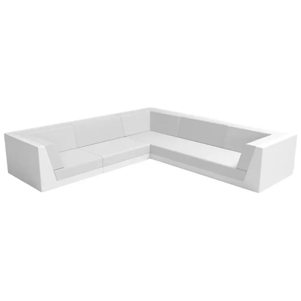 The Pixel 5 Seater Outdoor Modular Sofa by Vondom is perfect for any space, allowing you to configure it into a variety of shapes to suit your needs when paired with the rest of our Pixel modular sofa collection. With a low seating height, it provides cozy comfort and a sense of groundedness. This outdoor sofa is made from lightweight rotational molded resin and a tactile leather-like texture, making it suitable for both indoors and out.