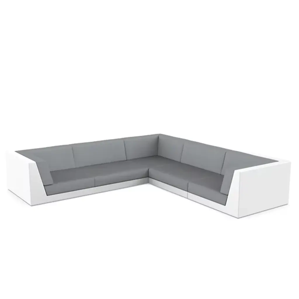 The Pixel 5 Seater Outdoor Modular Sofa by Vondom is perfect for any space, allowing you to configure it into a variety of shapes to suit your needs when paired with the rest of our Pixel modular sofa collection. With a low seating height, it provides cozy comfort and a sense of groundedness. This outdoor sofa is made from lightweight rotational molded resin and a tactile leather-like texture, making it suitable for both indoors and out.