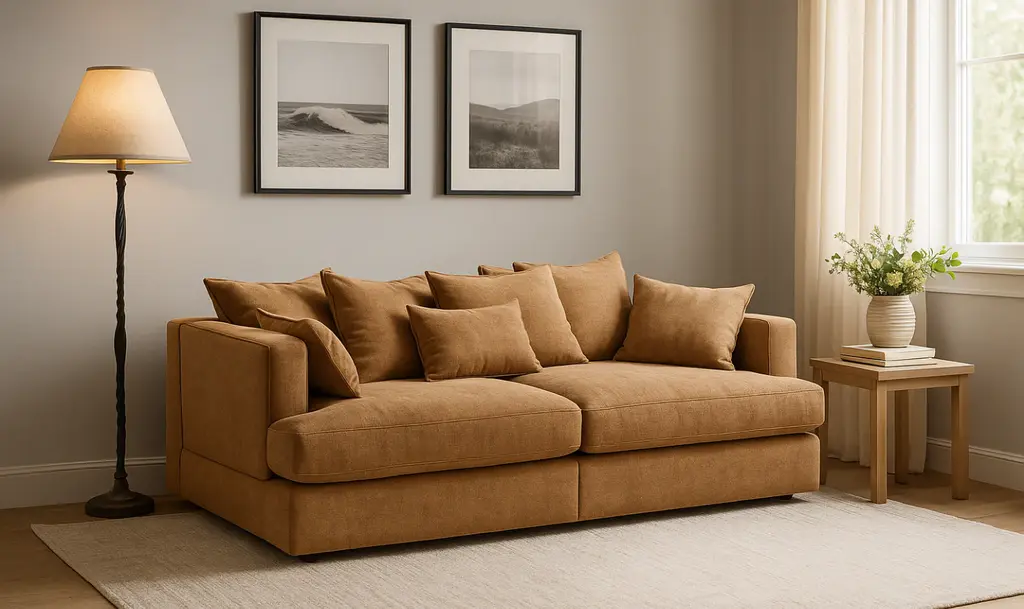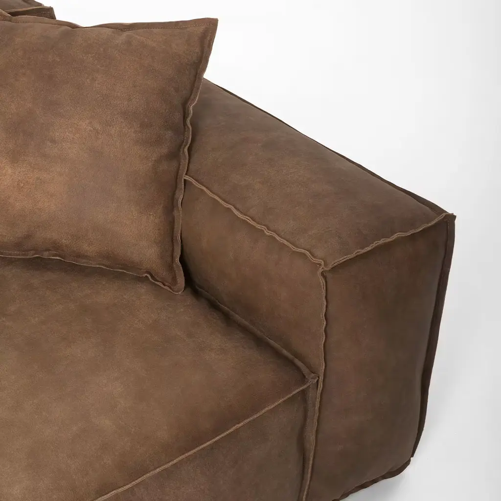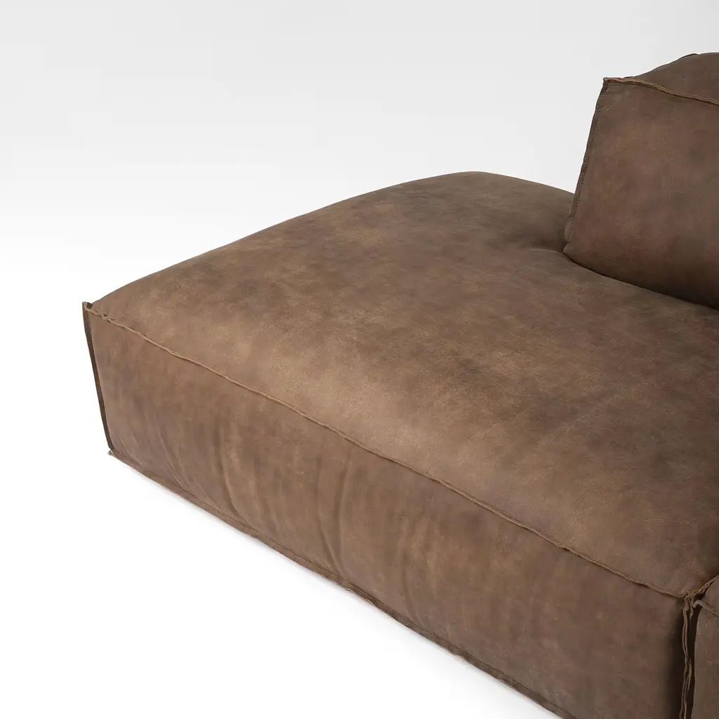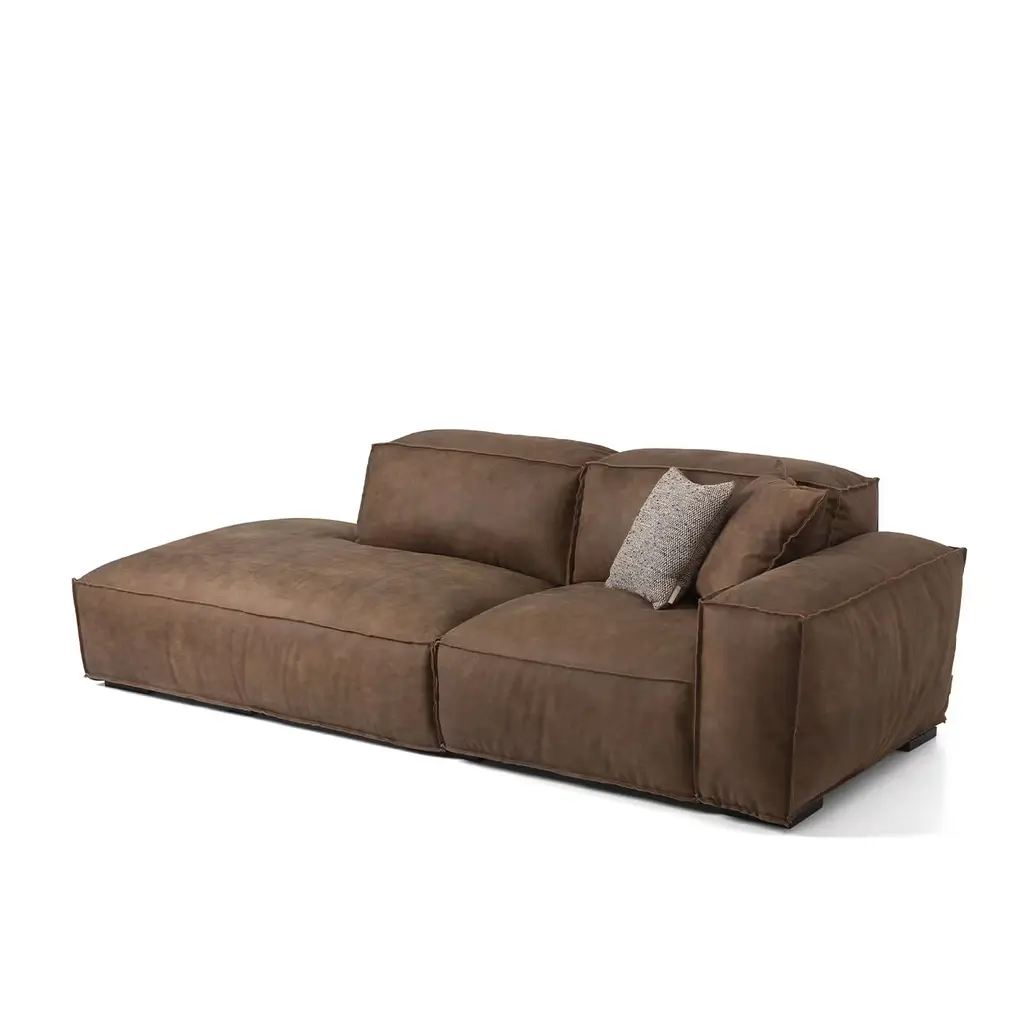 The Placido Free Side sofa transforms living spaces into relaxation zones. This modular 2-seater features a terminal side element and a hammerhead platform without an armrest, expanding the seating area for lounging. Soft lines and down-filled cushions offer unmatched comfort. The 85 cm wide seats extend by 30 cm for chaise-like comfort, while a sturdy iron base ensures durability. Raw-cut stitching highlights the craftsmanship. Decorative cushions not included.