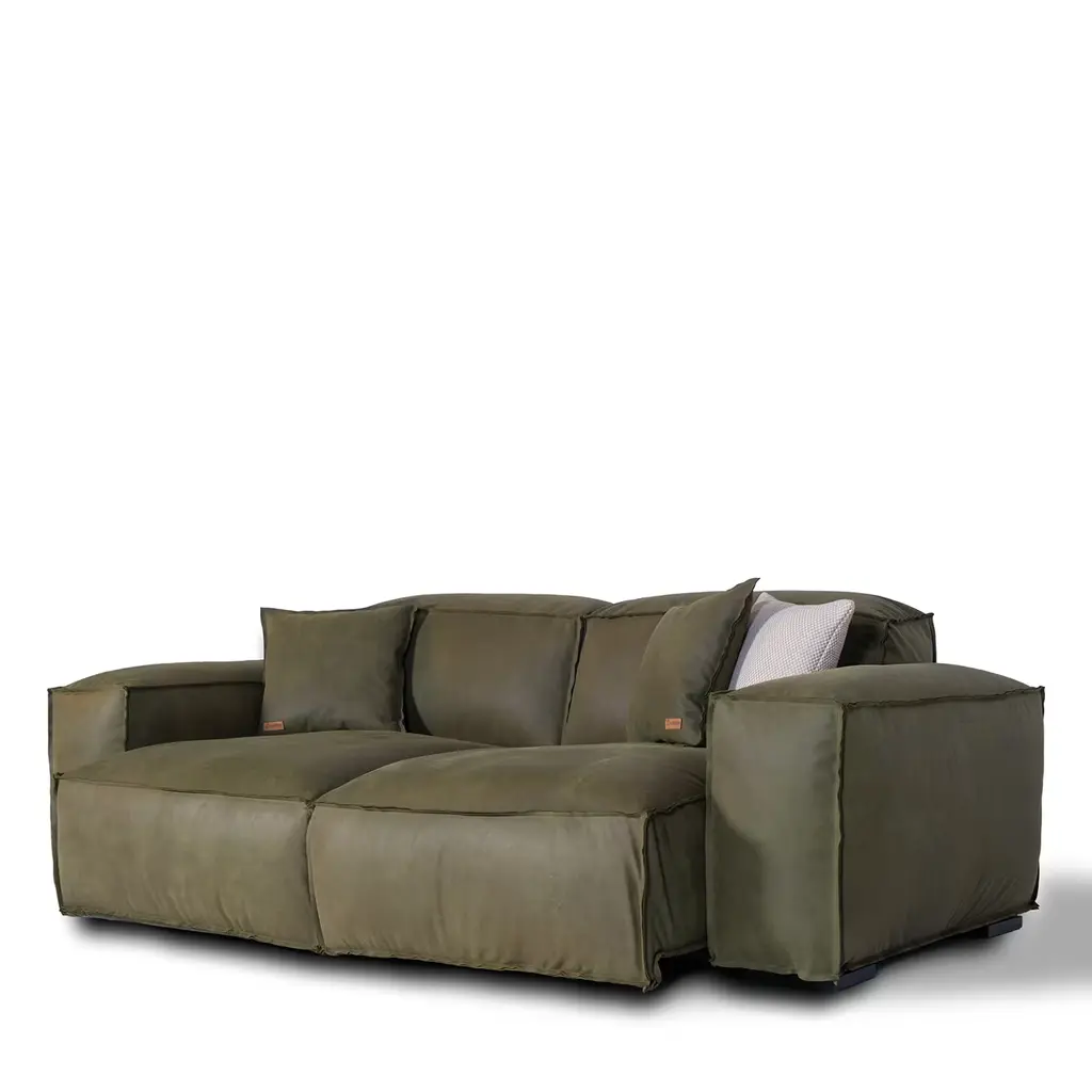 Meet the Placido vintage leather sofa – where elegance meets comfort. With raw-cut seams and a shapely silhouette, this Italian-made sofa is a blend of beauty and durability. Sliding seats provide relaxation and space, while open lip stitching adds a unique touch. Crafted with polyurethane foam and natural goose down, it promises luxurious comfort. Beech legs with black lacquered finish enhance its appeal. Cushion not included. Please, contact the Concierge service for further information.