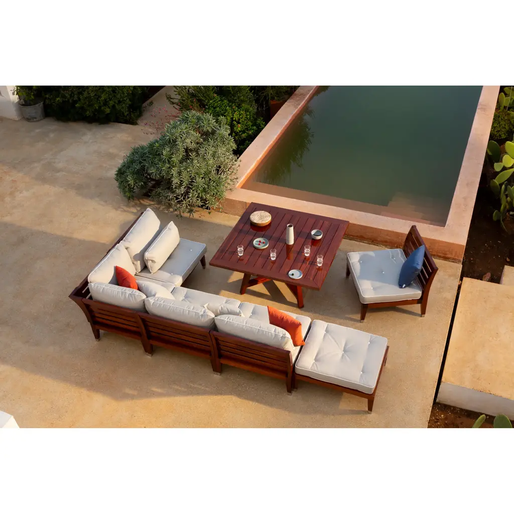 Transform your space with the C'est la vie collection from UNOPIU'. Crafted with polished mahogany and inspired by the elegance of English furniture and sea life, this modular sofa exudes luxury and sophistication. Featuring polished stainless steel feet and large comfortable seats, it's perfect for nautical spaces, luxury pools, and refined homes. Elevate your living with timeless style.