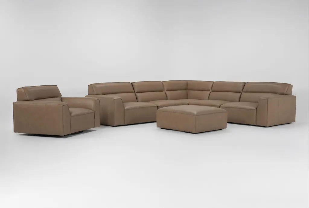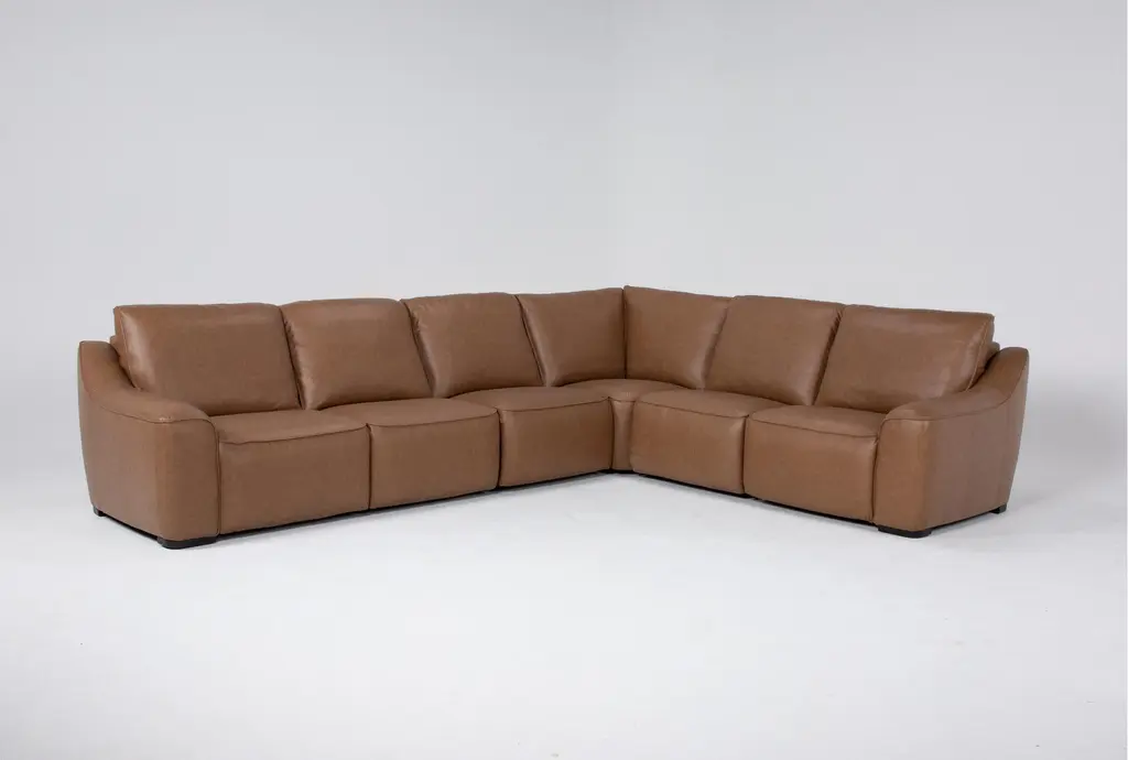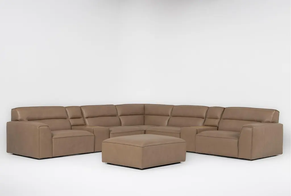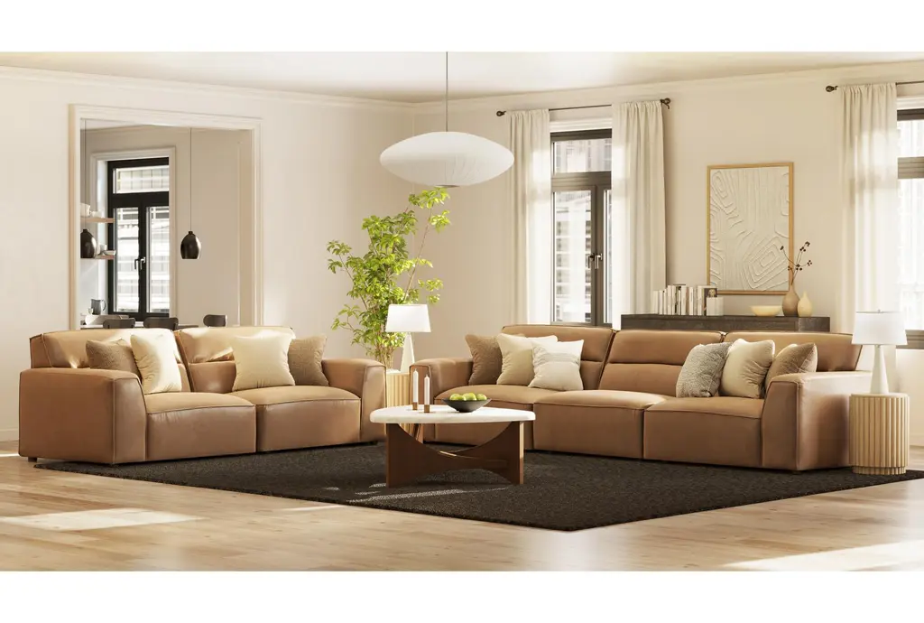 Rhone 129" Light Brown Leather Modular Sofa & Loveseat Set