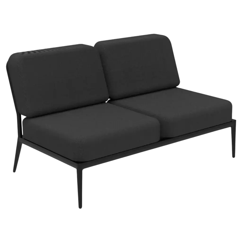 Ribbons Black Double central modular sofa by MOWEEDimensions: D83 x W136 x H81 cmMaterial: Aluminum, and upholstery.Weight: 27 kg.Also available in different colors and finishes. An unmistakable collection for its beauty and robustness. A tribute to the Valencian manufacturing tradition as a challenge to innovation, making it sustainable and durable. A collection with details that make it unique. We discover its most representative side, Ribbons. Engineering and tradition come together, thus achieving a collection with its own character.Möwee is part of the work, effort and commitment of Gaviota, a leading company in the outdoor sector. It was set up as an independent venture to broaden horizons in the outdoor furniture world, with its own distinctive character and way of doing things. Freshness, simplicity, quality and design are at the heart of its DNA.