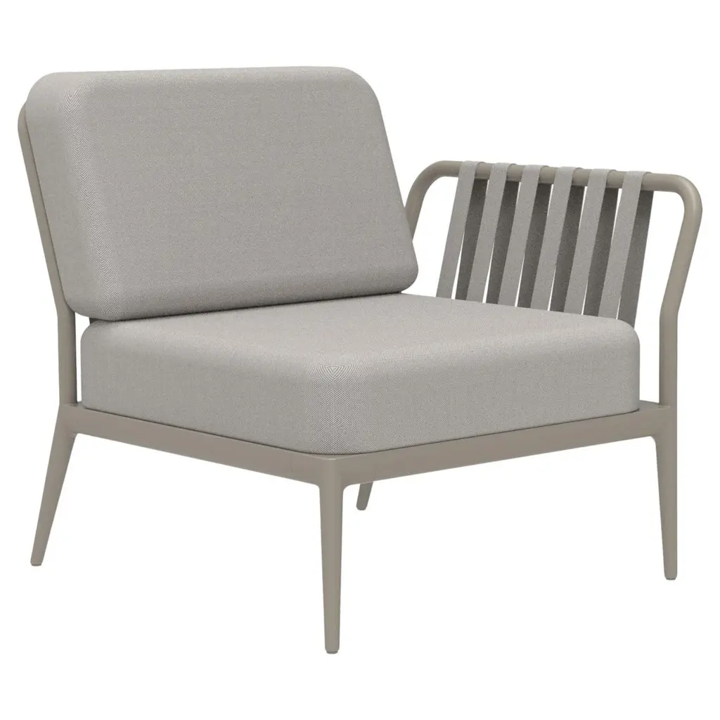 Ribbons bronze right modular sofa by mowee dimensions: d83 x w80 x h81 cm (seat height 42 cm) material: aluminum and upholstery weight: 19 kg also available in different colors and finishes. An unmistakable collection for its beauty and robustness. A tribute to the valencian manufacturing tradition as a challenge to innovation, making it sustainable and durable. A collection with details that make it unique. We discover its most representative side, ribbons. Engineering and tradition come together, thus achieving a collection with its own character. Möwee is part of the work, effort and commitment of gaviota, a leading company in the outdoor sector. It was set up as an independent venture to broaden horizons in the outdoor furniture world, with its own distinctive character and way of doing things. Freshness, simplicity, quality and design are at the heart of its dna.