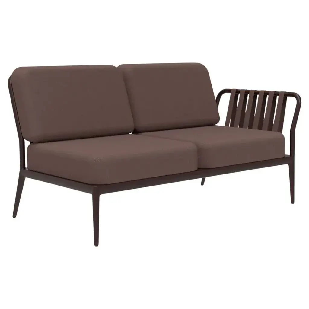 Ribbons chocolate double left modular sofa by mowee dimensions: d83 x w148 x h81 cm (seat height 42 cm). Material: aluminium and upholstery. Weight: 29 kg also available in different colors and finishes. An unmistakable collection for its beauty and robustness. A tribute to the valencian manufacturing tradition as a challenge to innovation, making it sustainable and durable. A collection with details that make it unique.